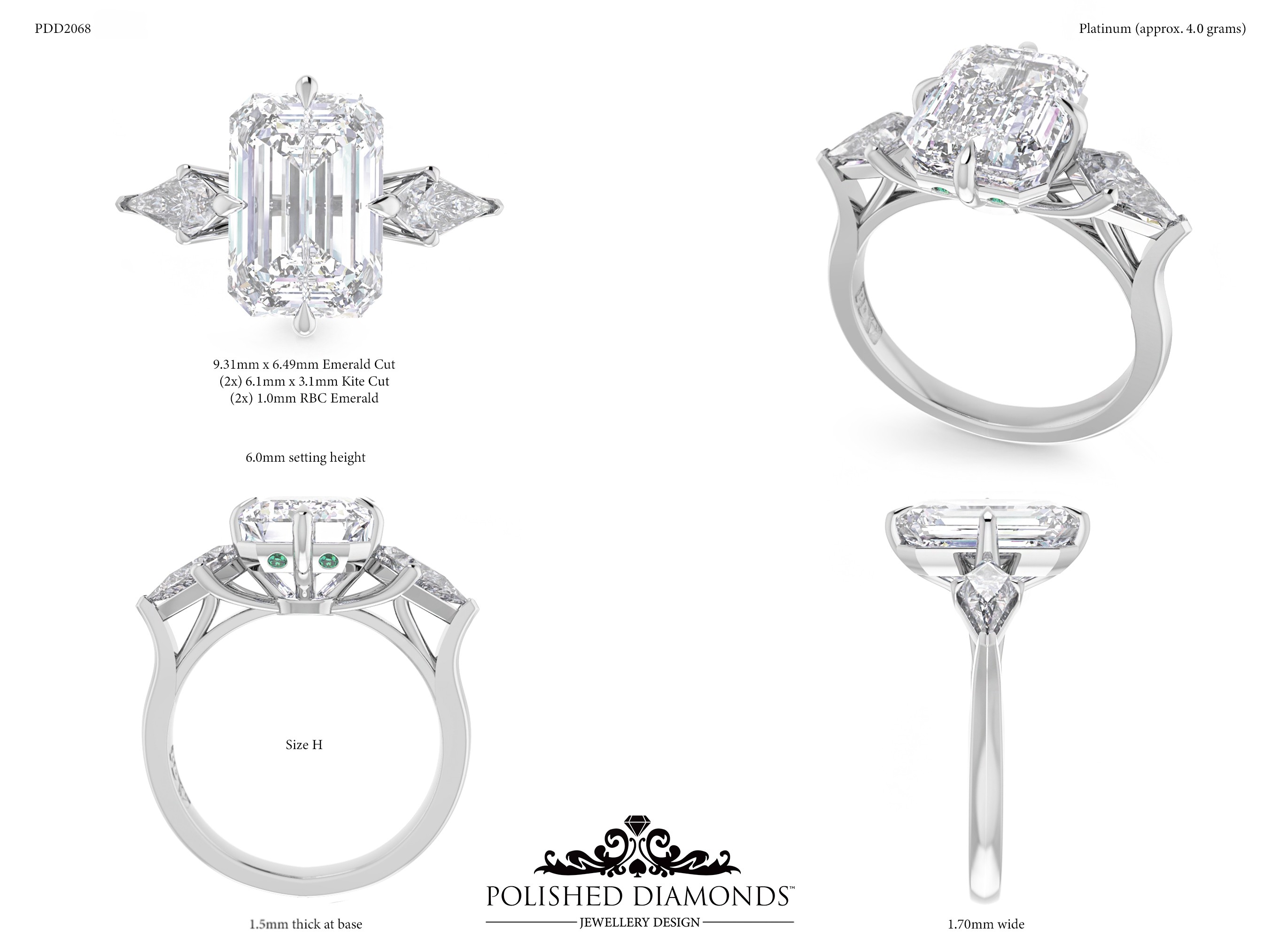 A handcrafted emerald trilogy ring. Product ID PDD2068. Elegant, timeless, and made with expert craftsmanship.
