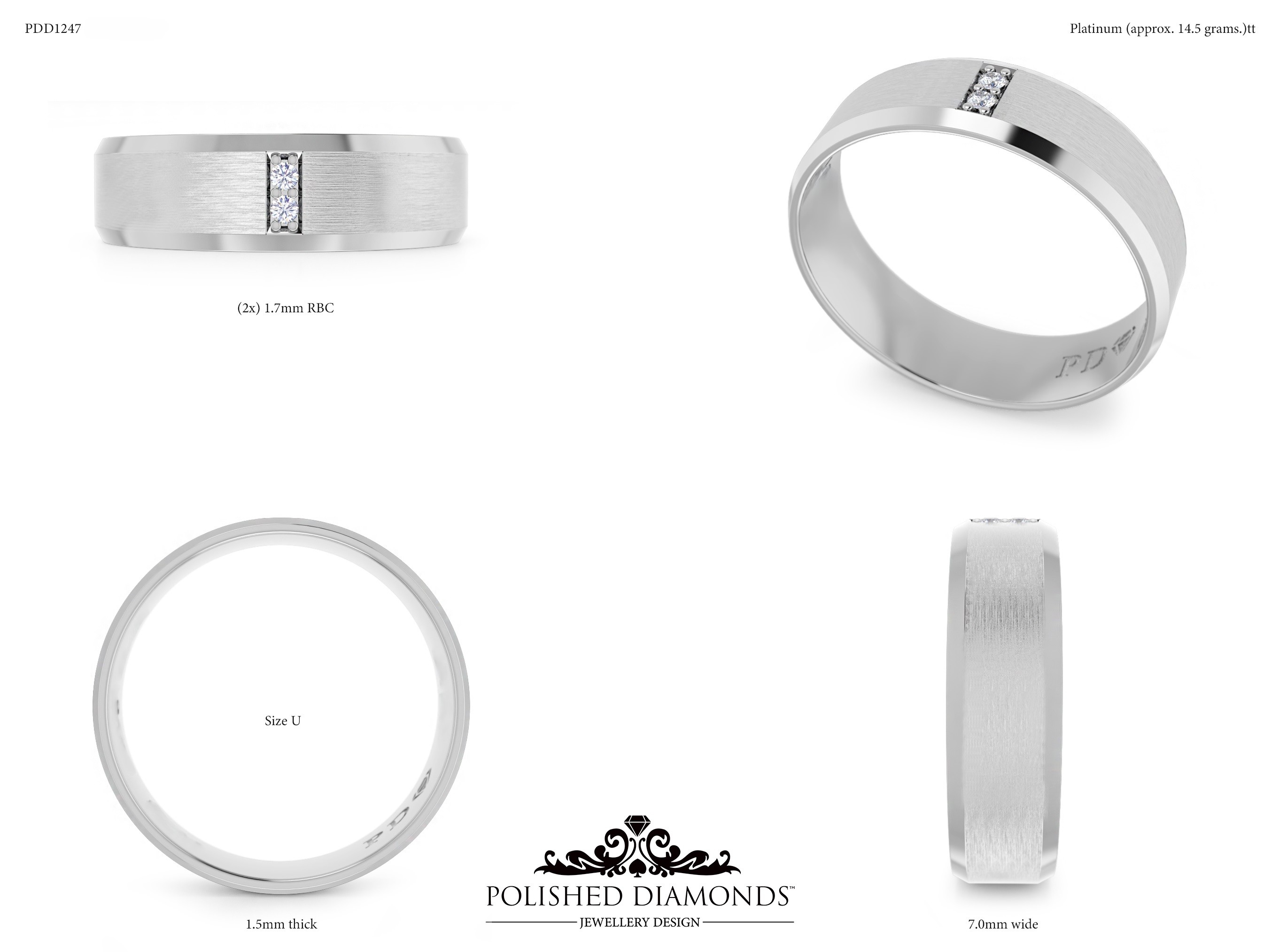The Wedding Ring (PDD1247) is a finely crafted band made to order in our New Zealand workshop. Available in platinum, white gold, yellow gold, and rose gold, each wedding band is individually sized and fully customisable in width, profile, and finish to complement your engagement ring perfectly. Visit our Auckland, Wellington, or Christchurch studios or contact our team to discuss design options.