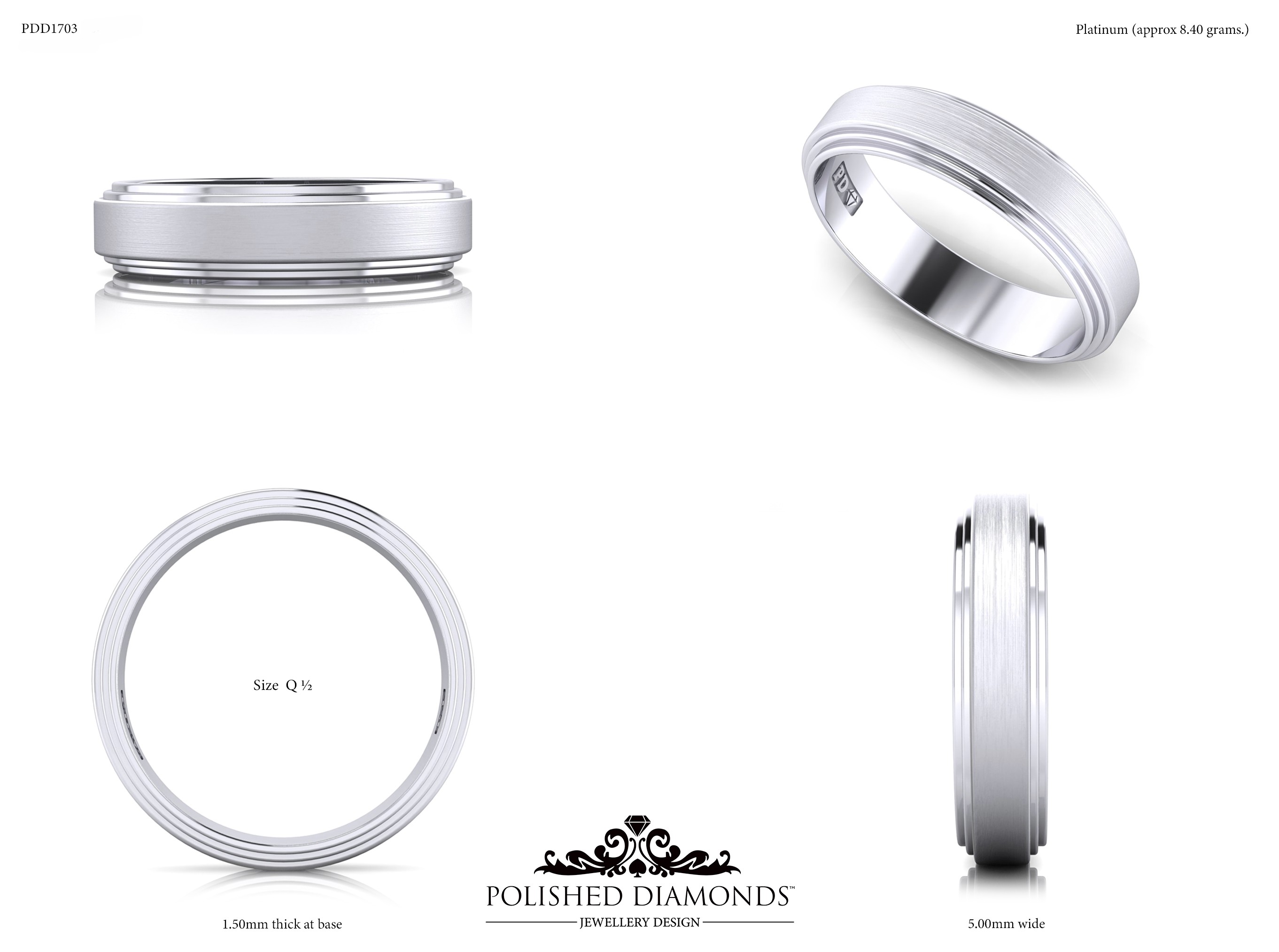 A handcrafted gents wedding ring. Product ID PDD1705. Elegant, timeless, and made with expert craftsmanship.