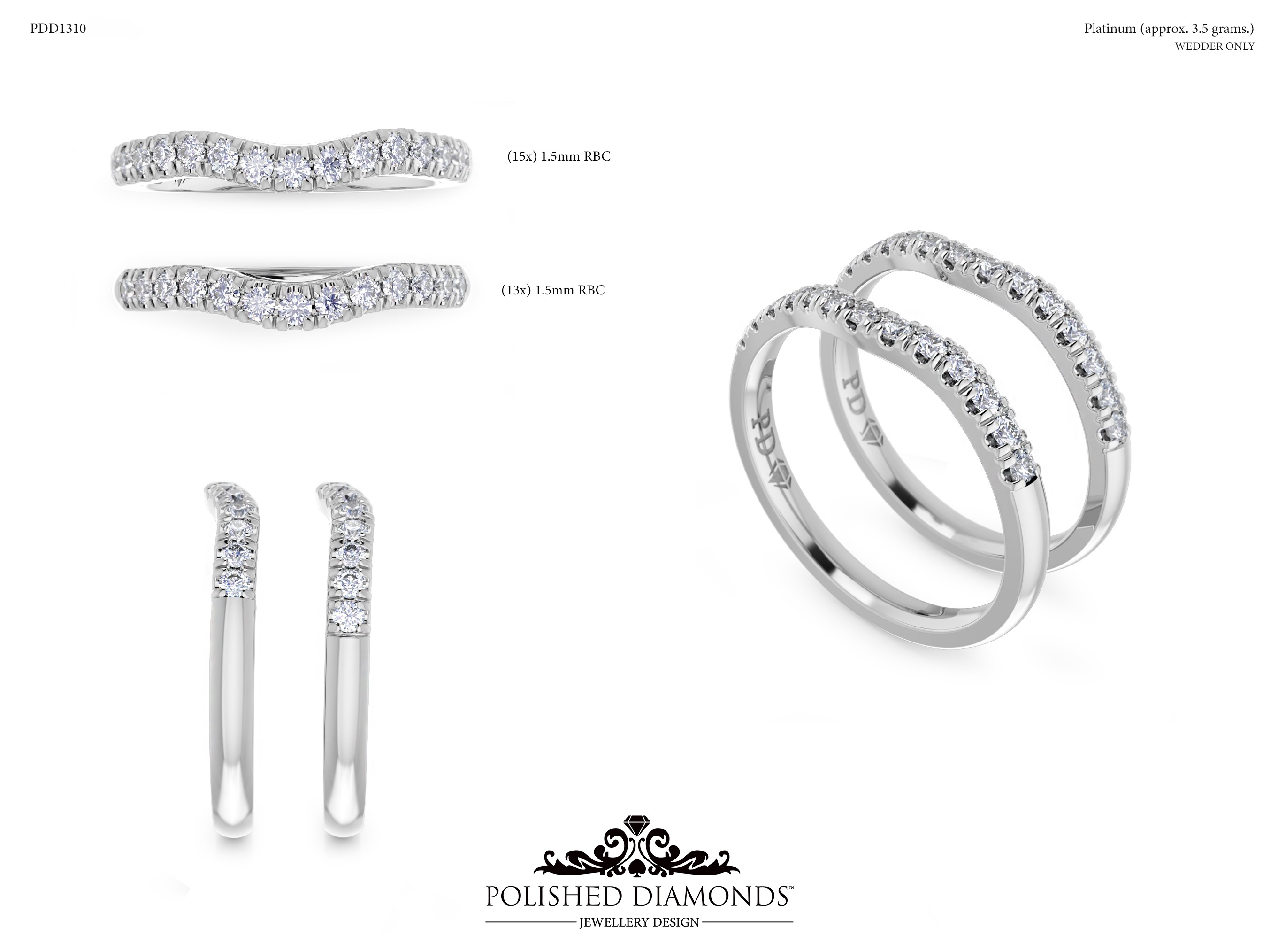 The Wedding Ring (PDD1310) is a finely crafted band made to order in our New Zealand workshop. Available in platinum, white gold, yellow gold, and rose gold, each wedding band is individually sized and fully customisable in width, profile, and finish to complement your engagement ring perfectly. Visit our Auckland, Wellington, or Christchurch studios or contact our team to discuss design options.