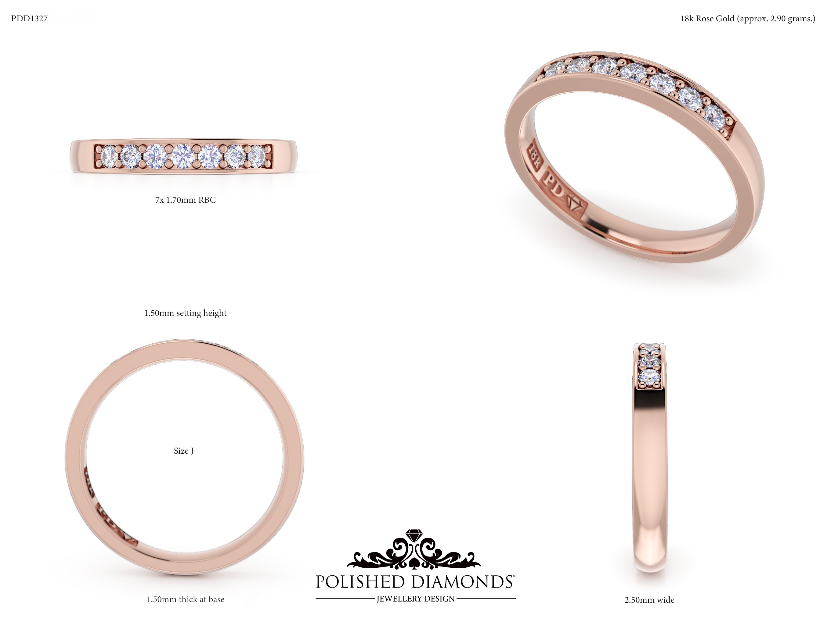 The Wedding Ring (PDD1327) is a finely crafted band made to order in our New Zealand workshop. Available in platinum, white gold, yellow gold, and rose gold, each wedding band is individually sized and fully customisable in width, profile, and finish to complement your engagement ring perfectly. Visit our Auckland, Wellington, or Christchurch studios or contact our team to discuss design options.