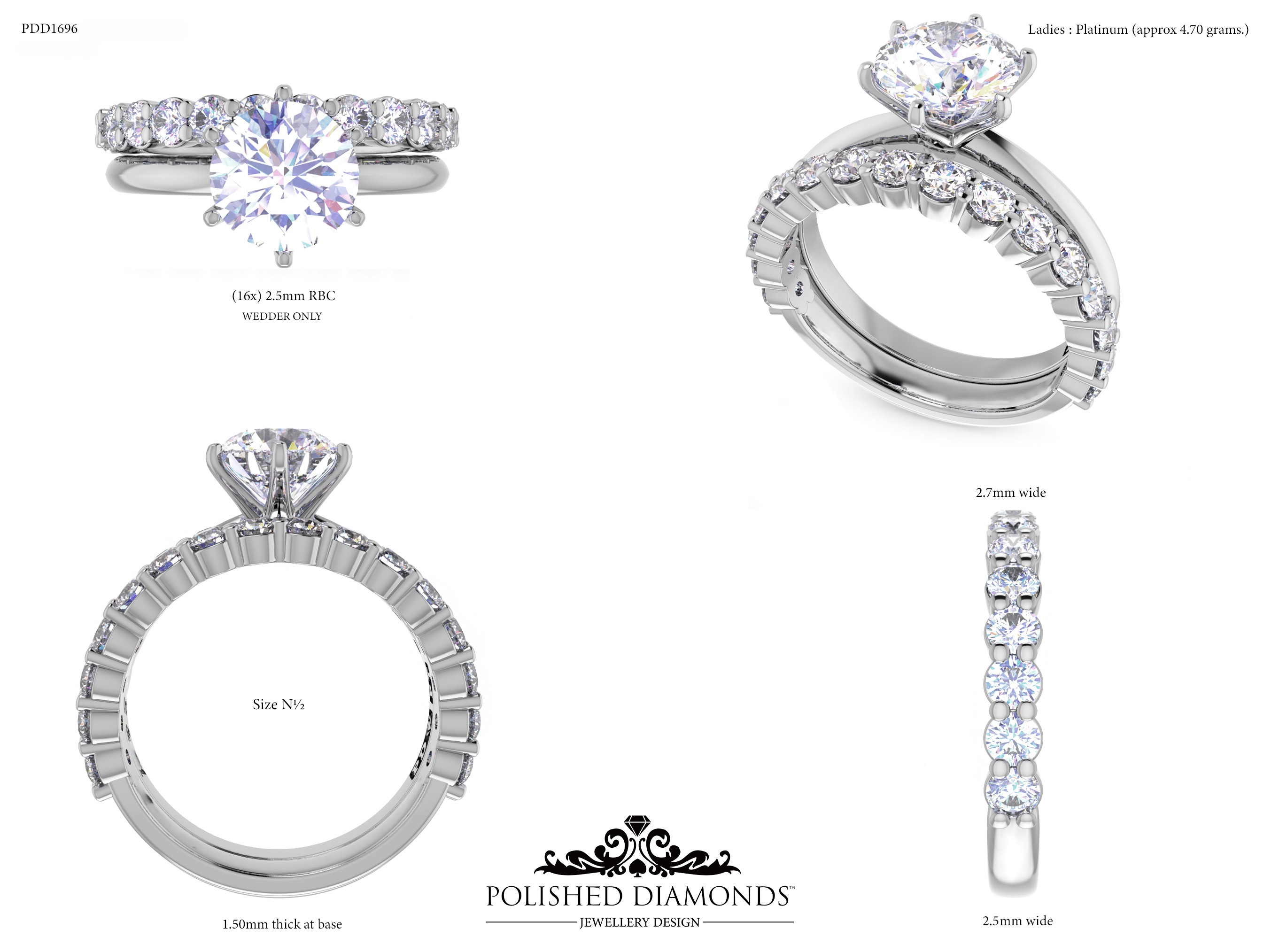A handcrafted ladys wedding ring. Product ID PDD1696. Elegant, timeless, and made with expert craftsmanship.