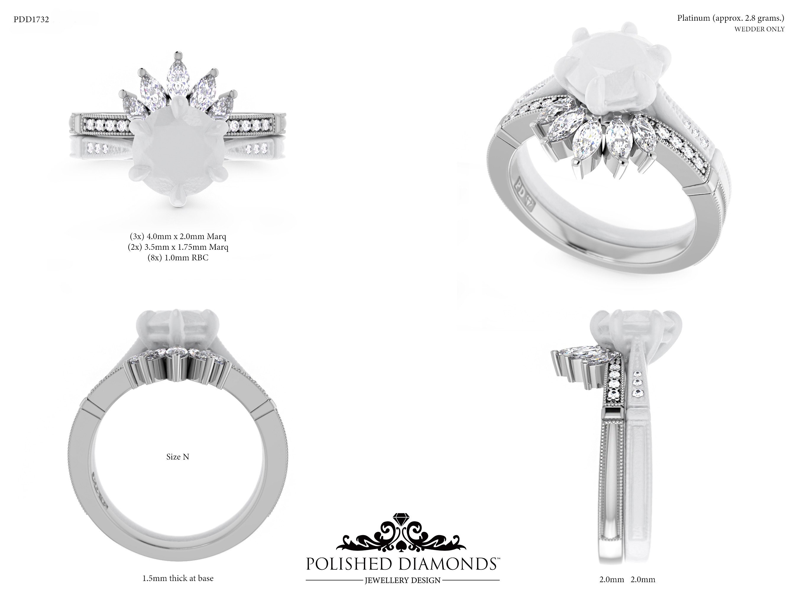 A handcrafted ladys wedding ring. Product ID PDD1732. Elegant, timeless, and made with expert craftsmanship.