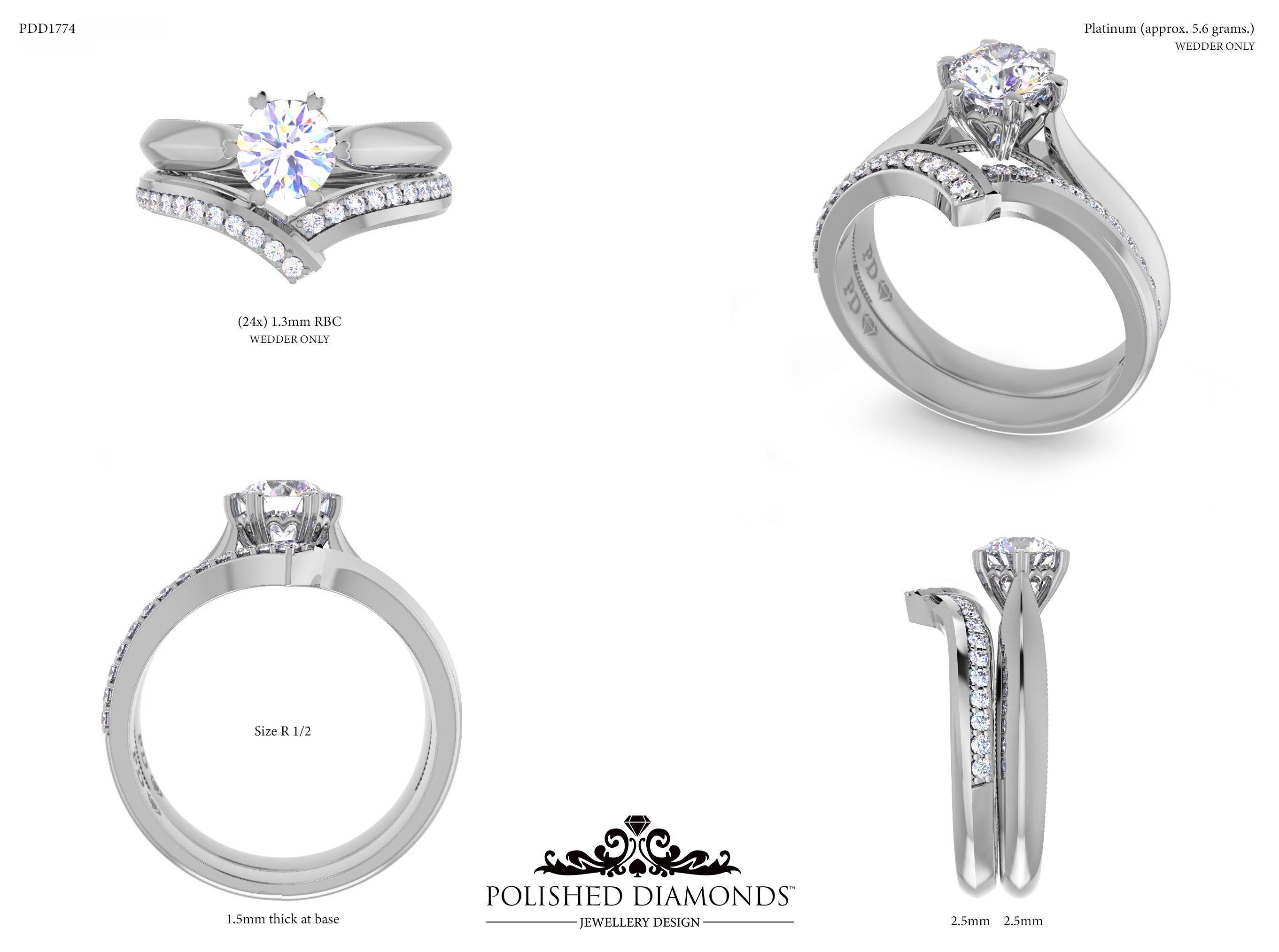 A handcrafted ladys wedding ring. Product ID PDD1774. Elegant, timeless, and made with expert craftsmanship.