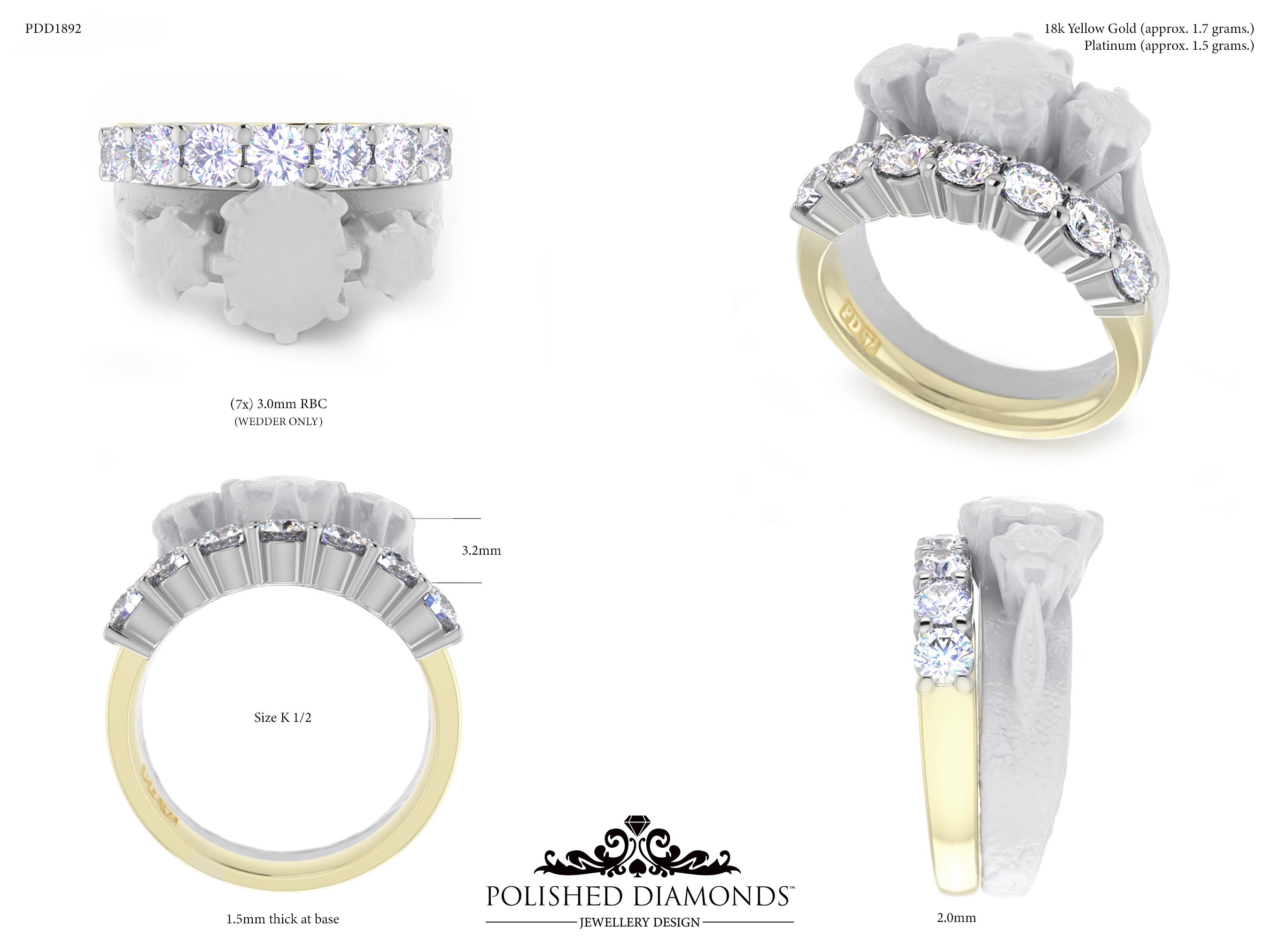 A handcrafted ladys wedding ring. Product ID PDD1892. Elegant, timeless, and made with expert craftsmanship.