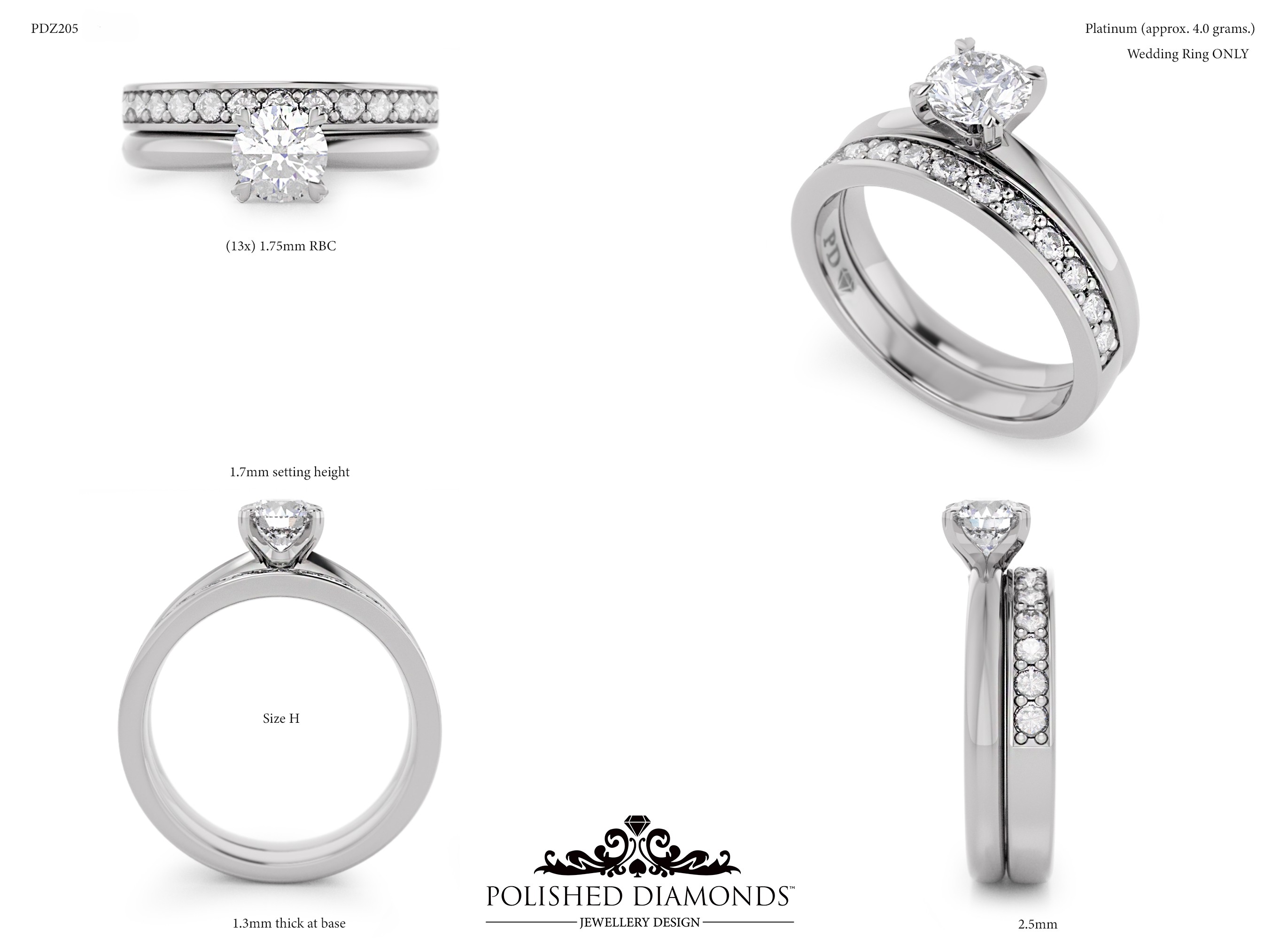A handcrafted ladys wedding ring. Product ID PDZ205. Elegant, timeless, and made with expert craftsmanship.