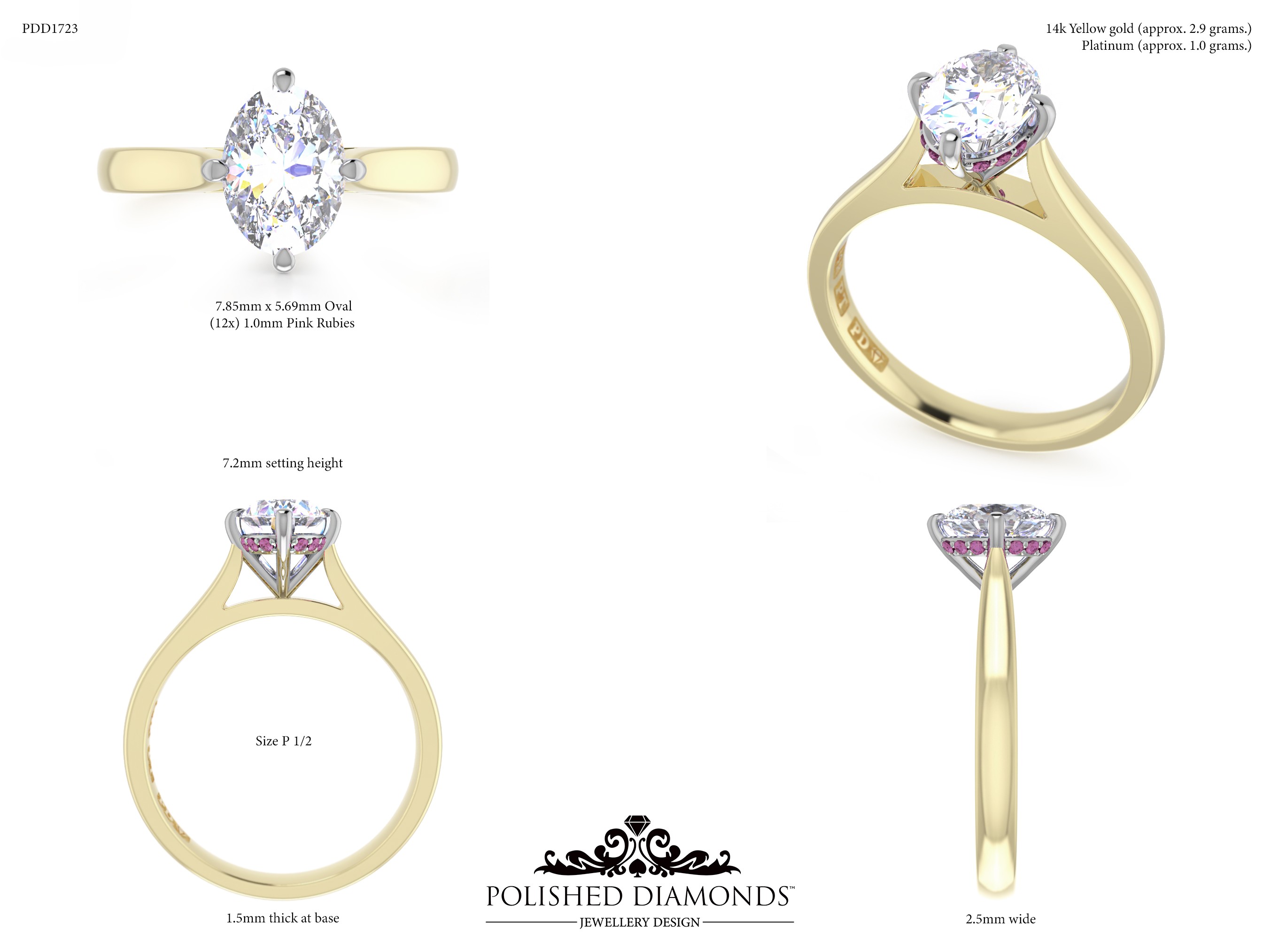 The Oval Solitaire Diamond Ring (PDD1723) is a handcrafted engagement ring featuring a brilliant oval-cut diamond in a classic solitaire setting, crafted in New Zealand. Available in platinum, white gold, yellow gold, or rose gold, this ring is made to order and fully customisable in diamond size, carat weight, and setting style. Visit our Auckland, Wellington, or Christchurch studios or enquire online for personalised pricing.