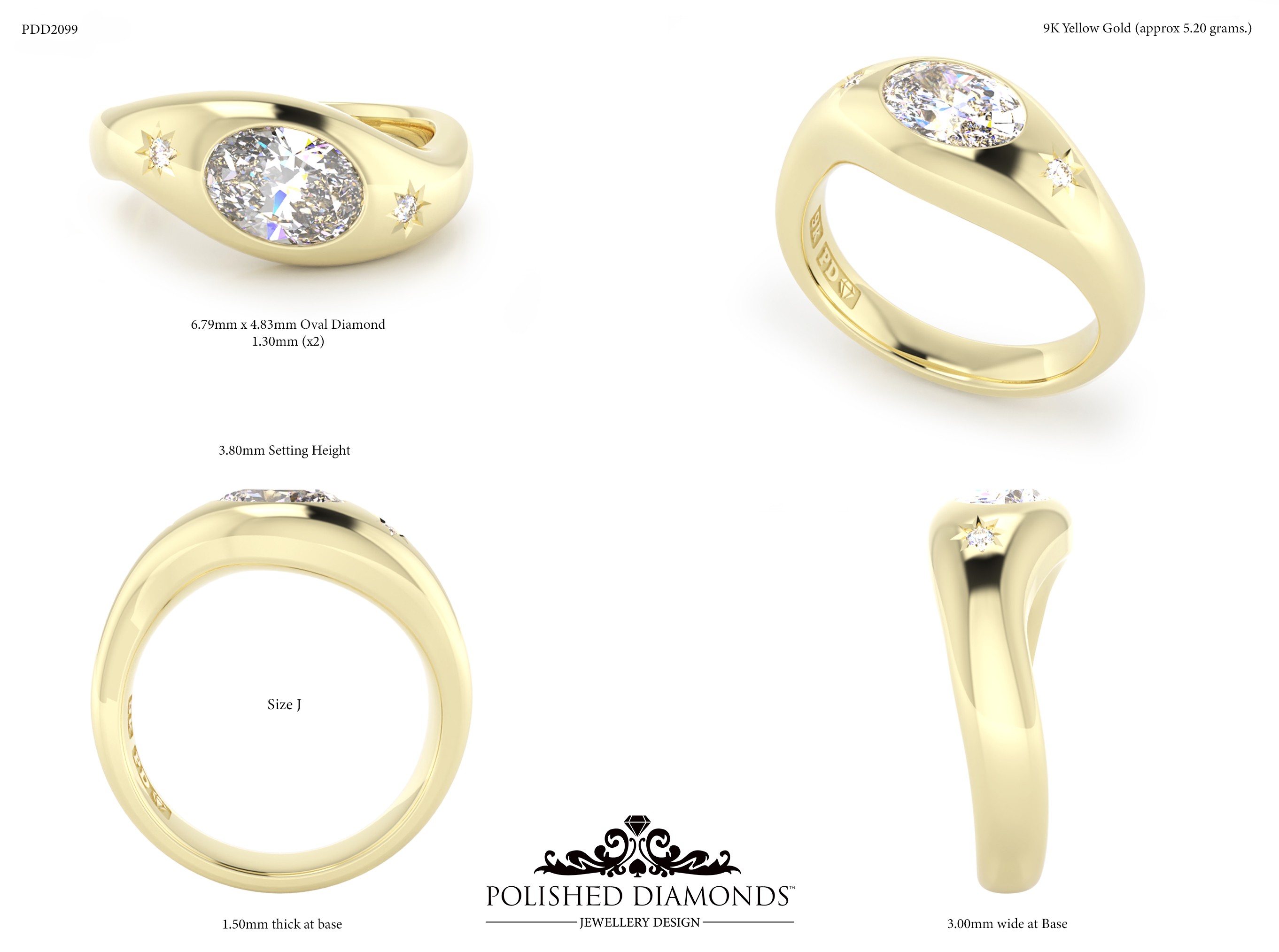 A handcrafted oval solitaire ring. Product ID PDD2099. Elegant, timeless, and made with expert craftsmanship.