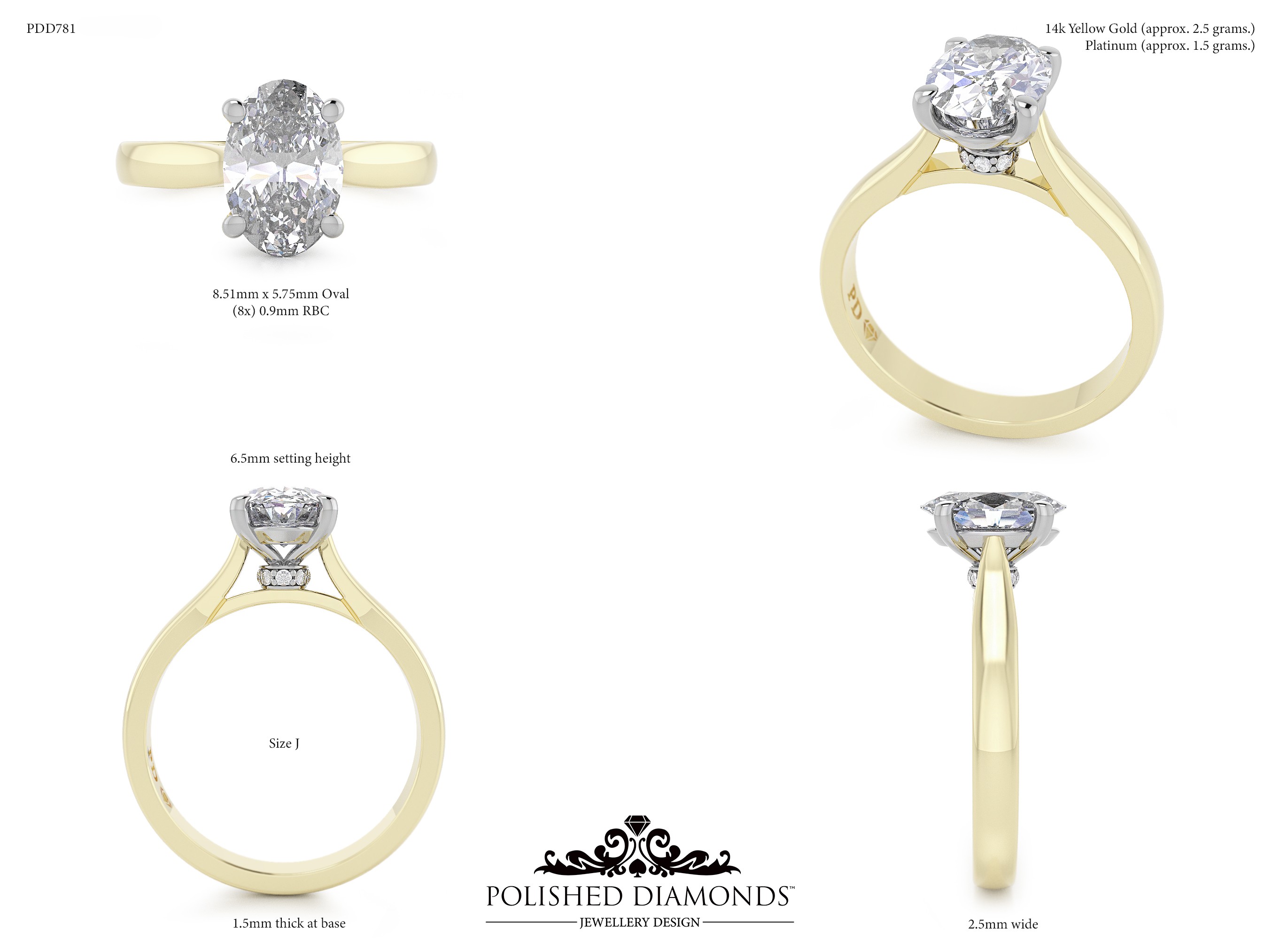 The Oval Solitaire Diamond Ring (PDD781) is a handcrafted engagement ring featuring a brilliant oval-cut diamond in a classic solitaire setting, crafted in New Zealand. Available in platinum, white gold, yellow gold, or rose gold, this ring is made to order and fully customisable in diamond size, carat weight, and setting style. Visit our Auckland, Wellington, or Christchurch studios or enquire online for personalised pricing.
