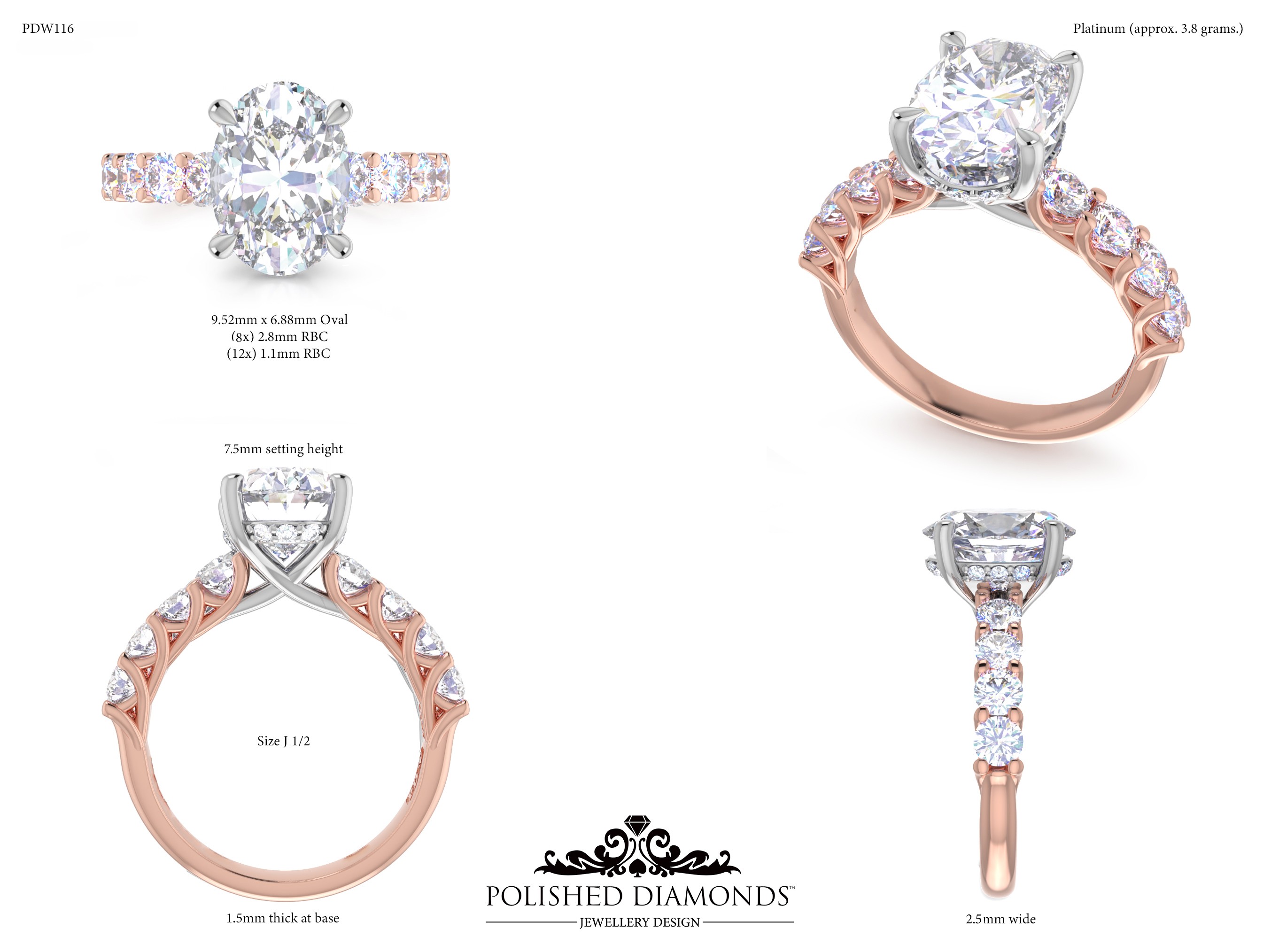 A handcrafted oval solitaire ring. Product ID PDW116. Elegant, timeless, and made with expert craftsmanship.