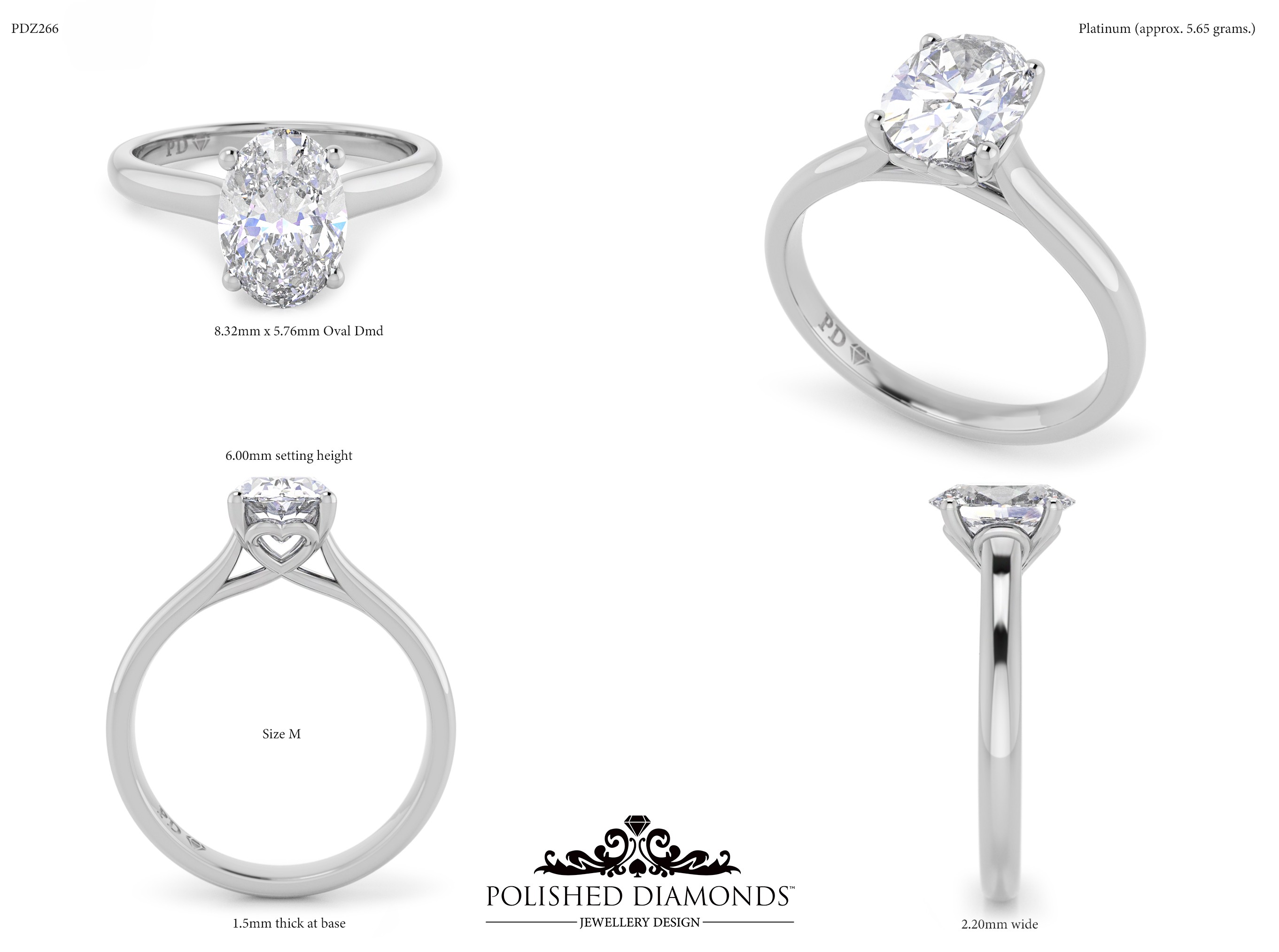 The Oval Solitaire Diamond Ring (PDZ266) is a handcrafted engagement ring featuring a brilliant oval-cut diamond in a classic solitaire setting, crafted in New Zealand. Available in platinum, white gold, yellow gold, or rose gold, this ring is made to order and fully customisable in diamond size, carat weight, and setting style. Visit our Auckland, Wellington, or Christchurch studios or enquire online for personalised pricing.