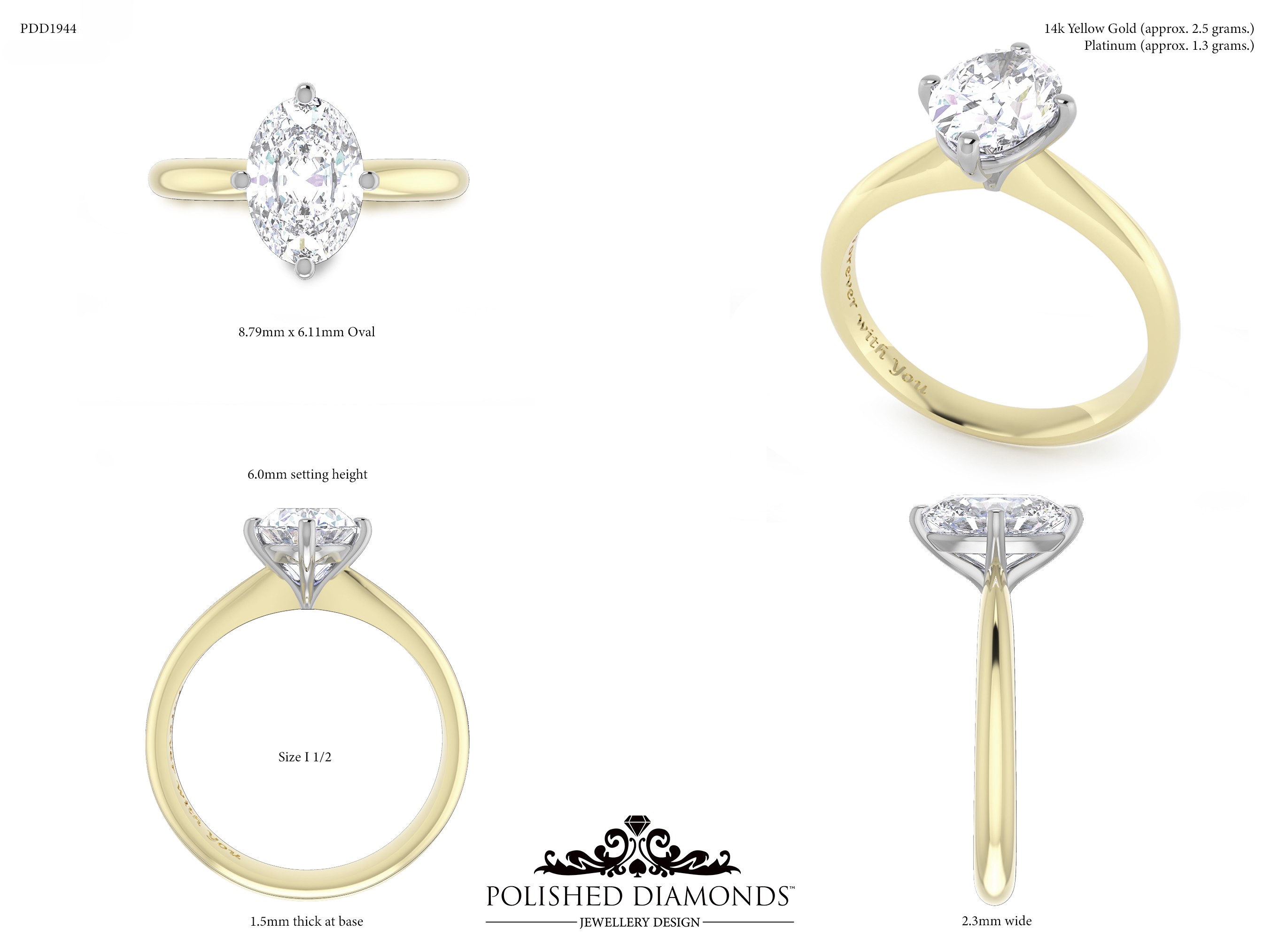 The Oval Solitaire Diamond Ring (PDD1944) is a handcrafted engagement ring featuring a brilliant oval-cut diamond in a classic solitaire setting, crafted in New Zealand. Available in platinum, white gold, yellow gold, or rose gold, this ring is made to order and fully customisable in diamond size, carat weight, and setting style. Visit our Auckland, Wellington, or Christchurch studios or enquire online for personalised pricing.