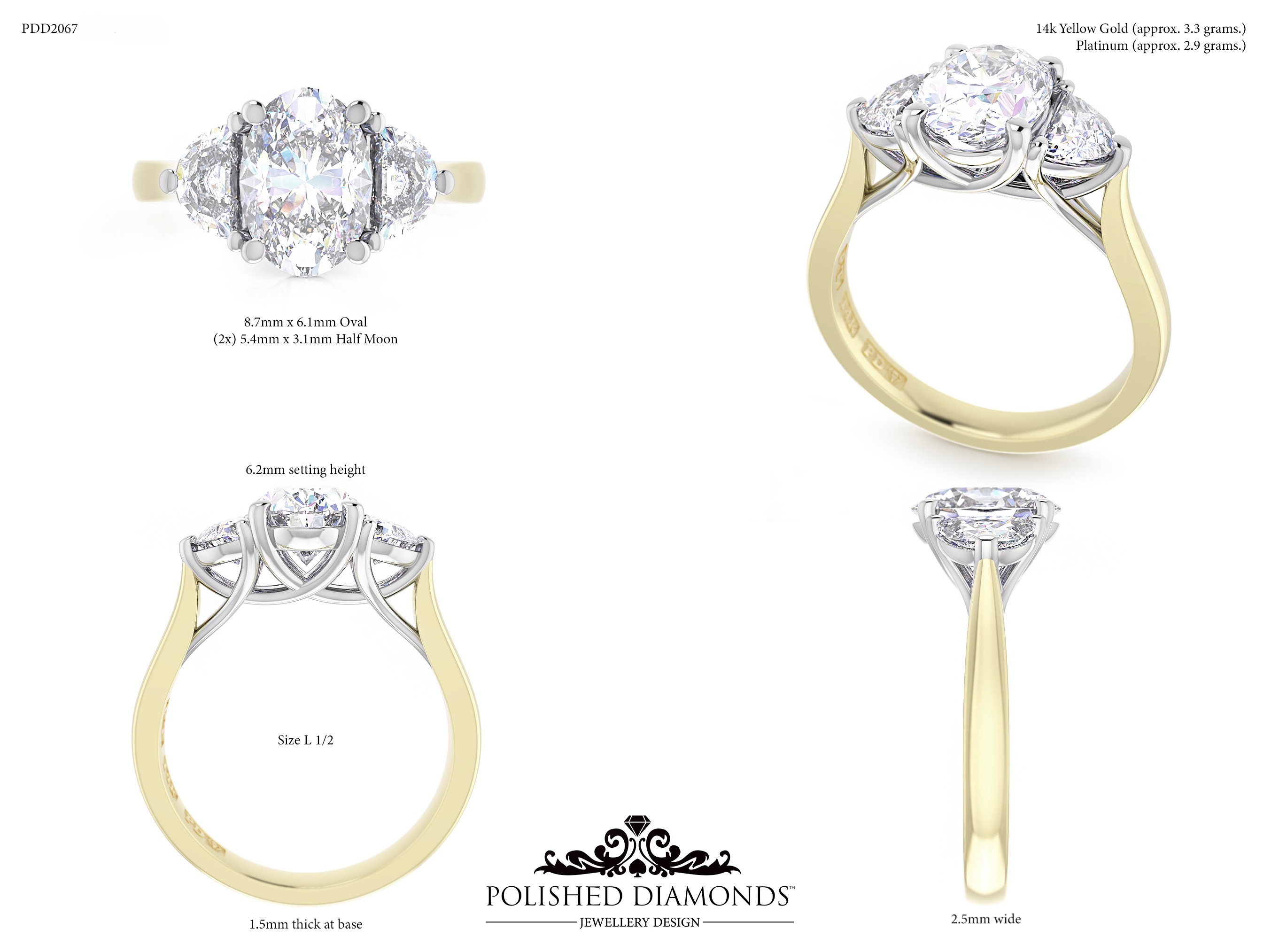 A handcrafted oval trilogy ring. Product ID PDD2067. Elegant, timeless, and made with expert craftsmanship.