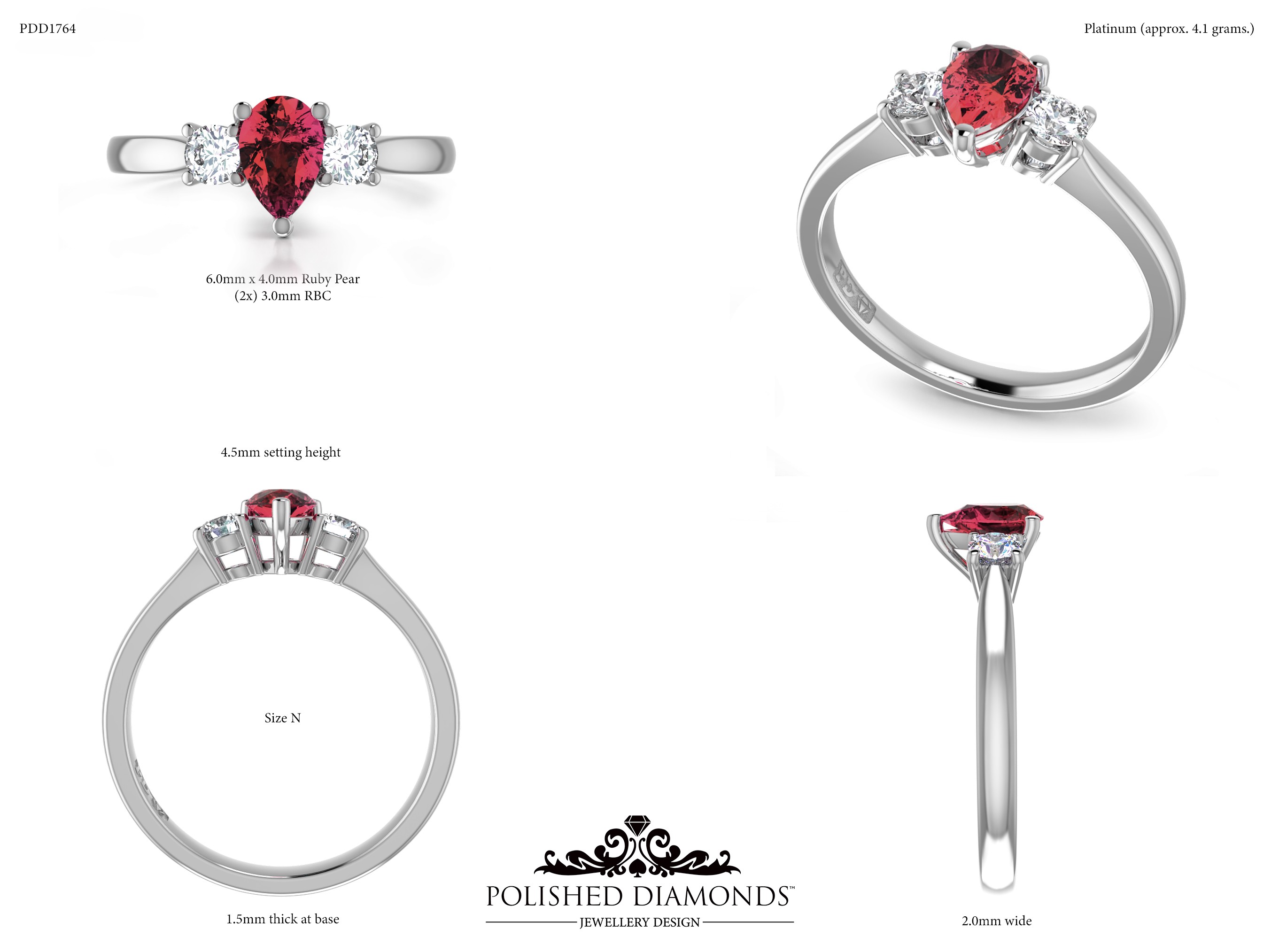 The Pear Trilogy Diamond Ring (PDD1764) features three brilliant pear-cut diamonds representing your past, present, and future — a deeply meaningful choice for engagements and anniversaries. Crafted in New Zealand and made to order in your choice of platinum, white gold, yellow gold, or rose gold. Visit our Auckland, Wellington, or Christchurch studios or enquire online for pricing.