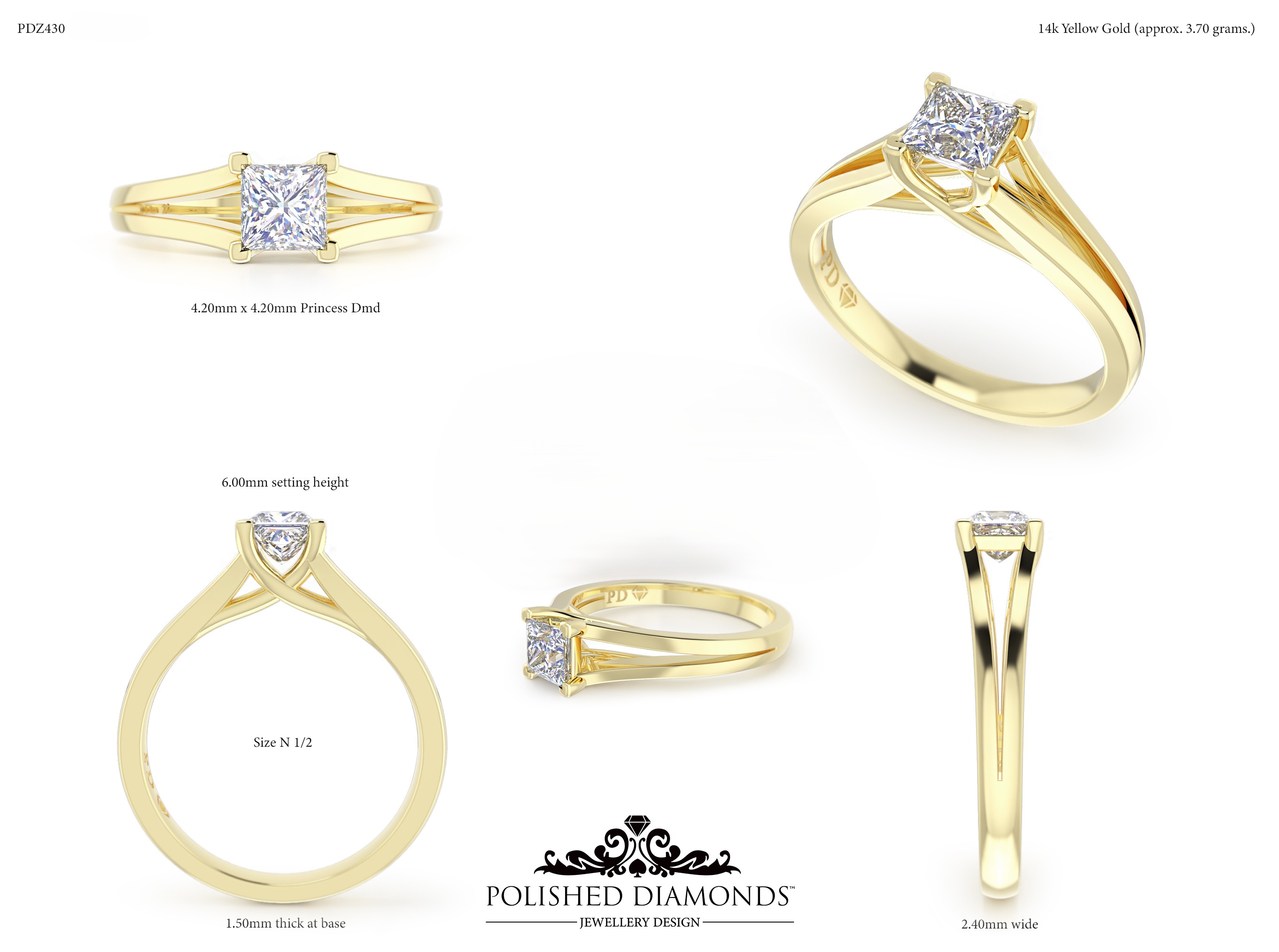 The Princess Solitaire Diamond Ring (PDZ430) is a handcrafted engagement ring featuring a brilliant princess-cut diamond in a classic solitaire setting, crafted in New Zealand. Available in platinum, white gold, yellow gold, or rose gold, this ring is made to order and fully customisable in diamond size, carat weight, and setting style. Visit our Auckland, Wellington, or Christchurch studios or enquire online for personalised pricing.