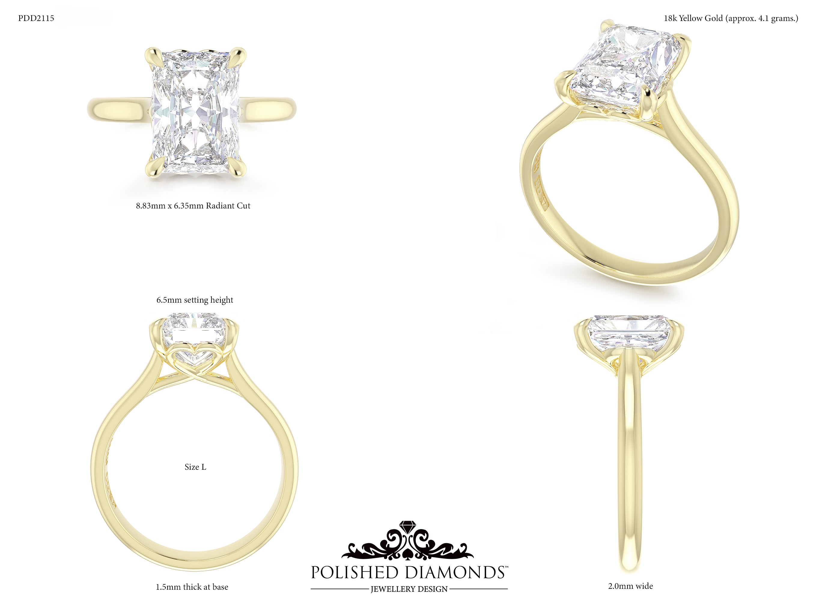 A handcrafted radiant solitaire ring. Product ID PDD2115. Elegant, timeless, and made with expert craftsmanship.
