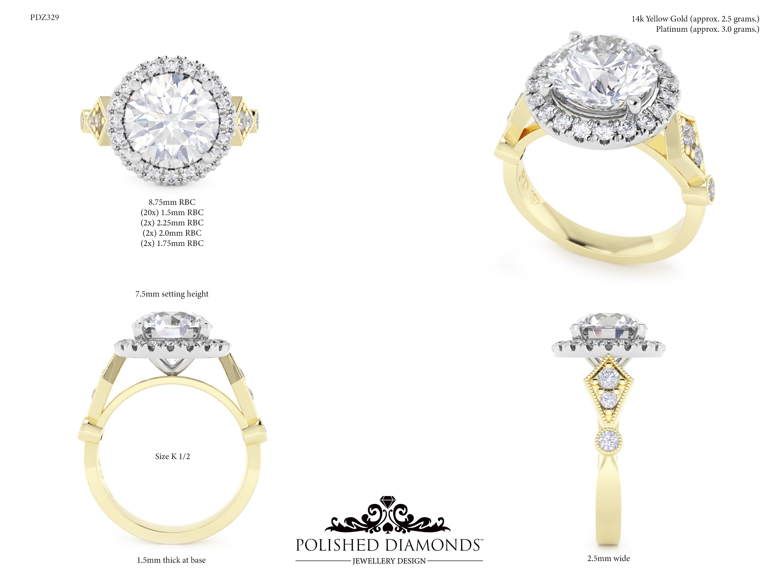 The Round Halo Diamond Ring (PDZ329) features a stunning round-cut centre diamond surrounded by a brilliant halo of smaller diamonds for exceptional sparkle. Handcrafted in New Zealand and made to order in platinum, white gold, yellow gold, or rose gold. Every detail is fully customisable — visit our Auckland, Wellington, or Christchurch studios or enquire online for pricing and options.