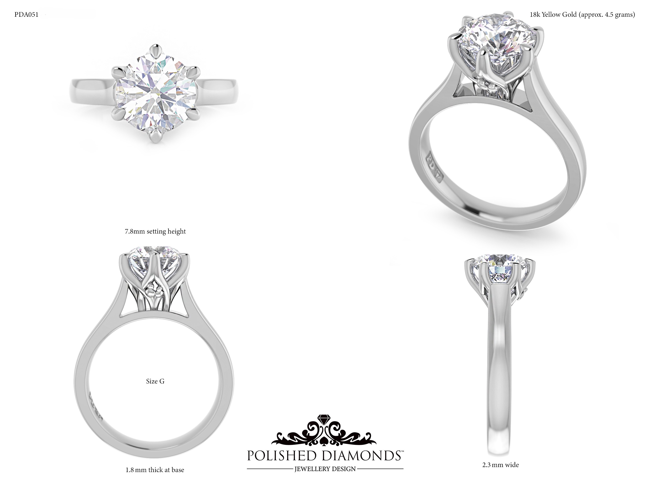 A handcrafted round solitaire ring. Product ID PDA051. Elegant, timeless, and made with expert craftsmanship.