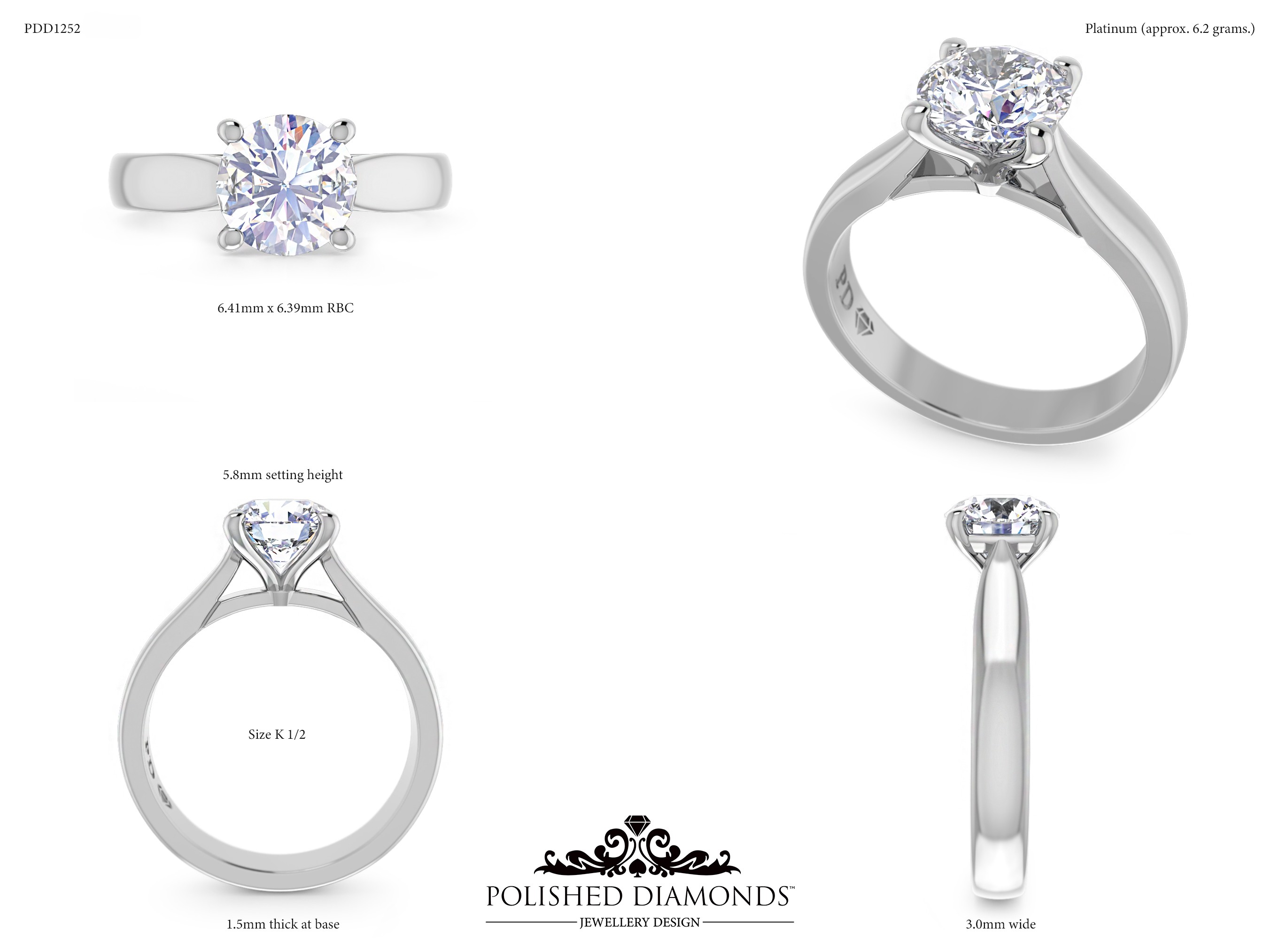 The Round Solitaire Diamond Ring (PDD1252) is a handcrafted engagement ring featuring a brilliant round-cut diamond in a classic solitaire setting, crafted in New Zealand. Available in platinum, white gold, yellow gold, or rose gold, this ring is made to order and fully customisable in diamond size, carat weight, and setting style. Visit our Auckland, Wellington, or Christchurch studios or enquire online for personalised pricing.