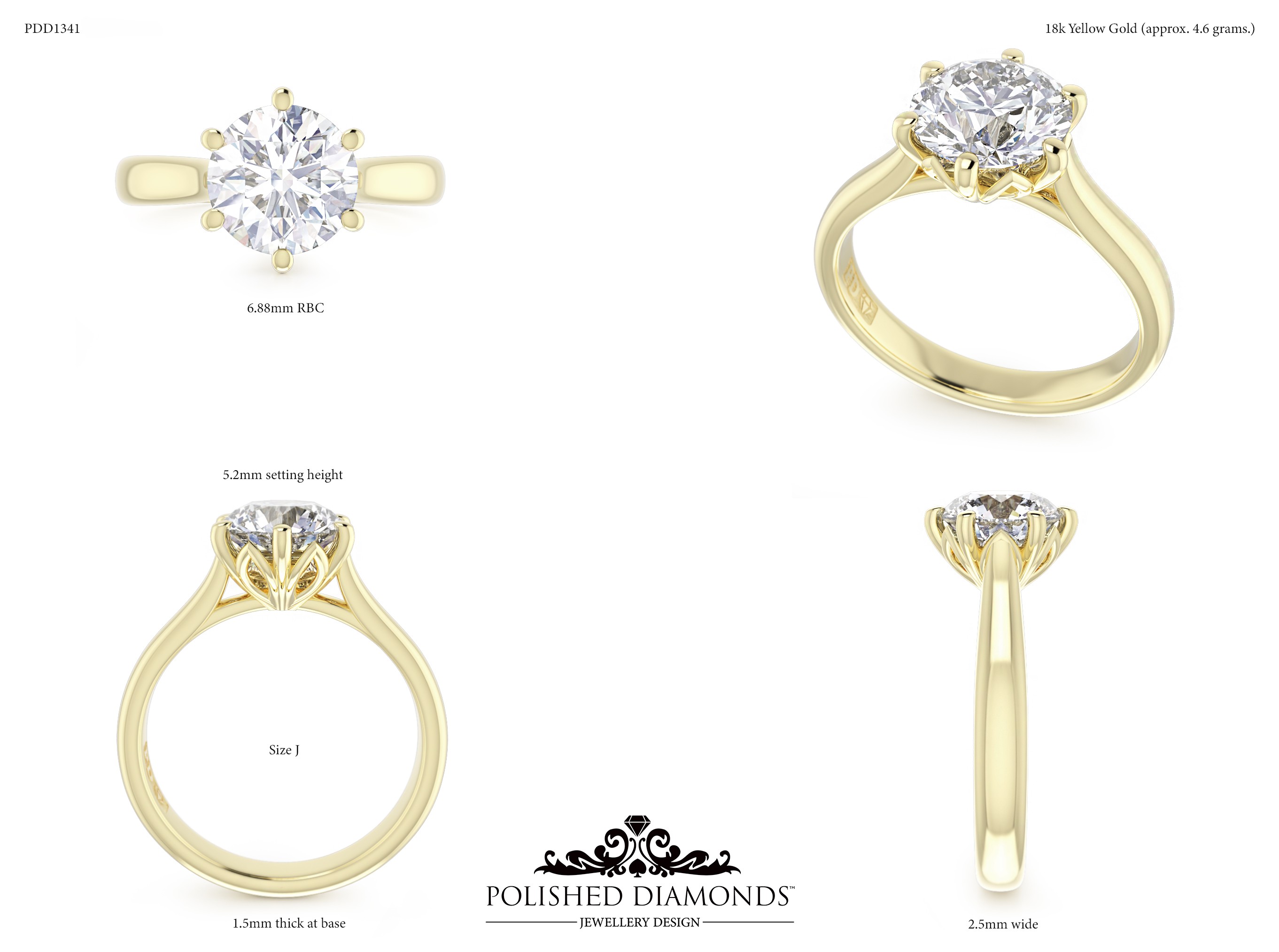 The Round Solitaire Diamond Ring (PDD1341) is a handcrafted engagement ring featuring a brilliant round-cut diamond in a classic solitaire setting, crafted in New Zealand. Available in platinum, white gold, yellow gold, or rose gold, this ring is made to order and fully customisable in diamond size, carat weight, and setting style. Visit our Auckland, Wellington, or Christchurch studios or enquire online for personalised pricing.