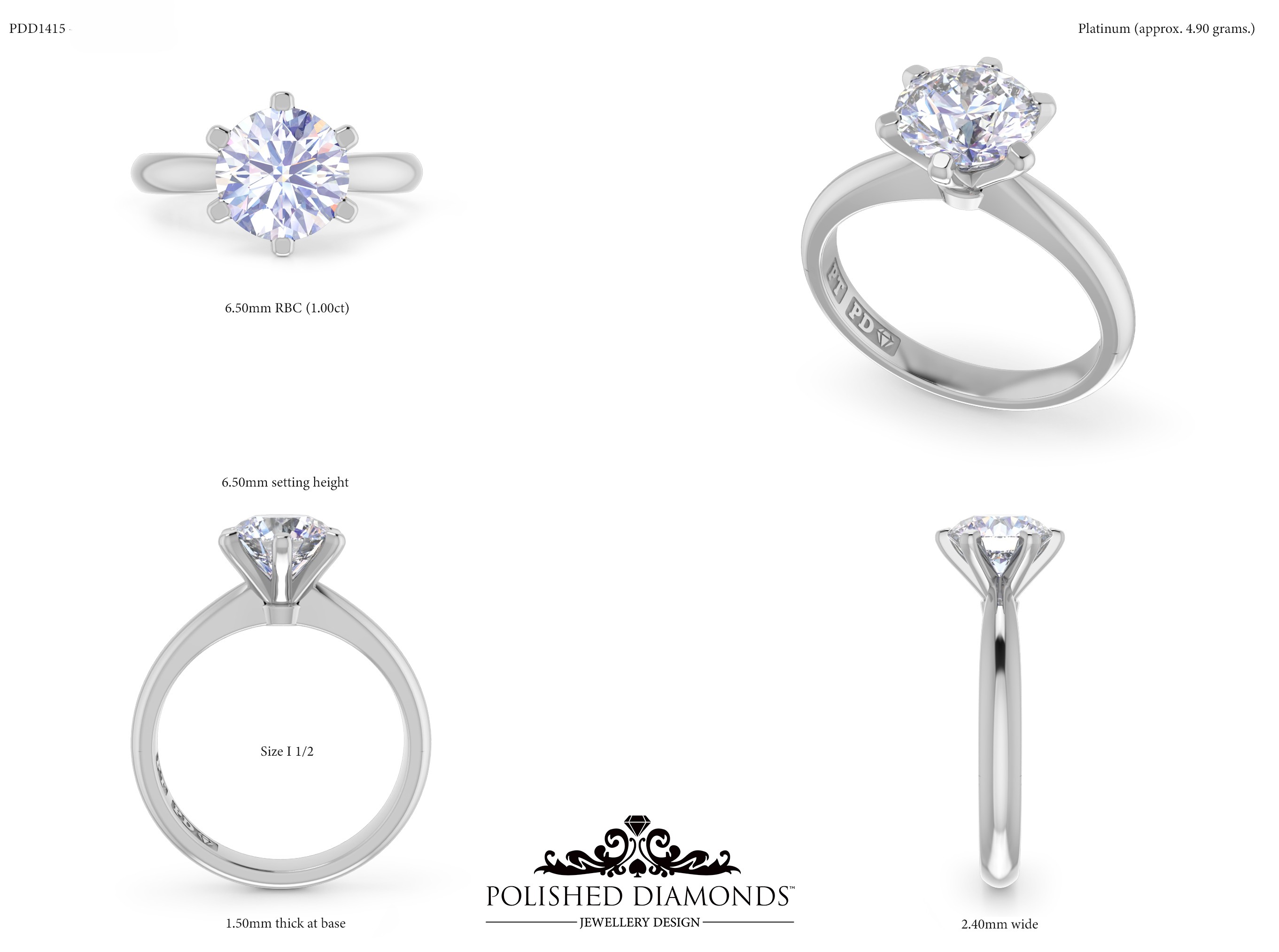 The Round Solitaire Diamond Ring (PDD1415) is a handcrafted engagement ring featuring a brilliant round-cut diamond in a classic solitaire setting, crafted in New Zealand. Available in platinum, white gold, yellow gold, or rose gold, this ring is made to order and fully customisable in diamond size, carat weight, and setting style. Visit our Auckland, Wellington, or Christchurch studios or enquire online for personalised pricing.