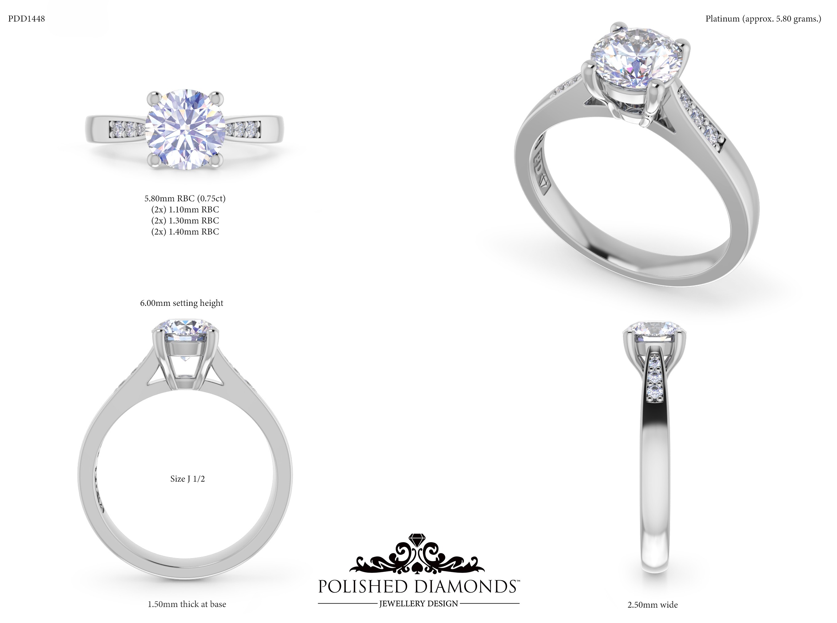 The Round Solitaire Diamond Ring (PDD1448) is a handcrafted engagement ring featuring a brilliant round-cut diamond in a classic solitaire setting, crafted in New Zealand. Available in platinum, white gold, yellow gold, or rose gold, this ring is made to order and fully customisable in diamond size, carat weight, and setting style. Visit our Auckland, Wellington, or Christchurch studios or enquire online for personalised pricing.