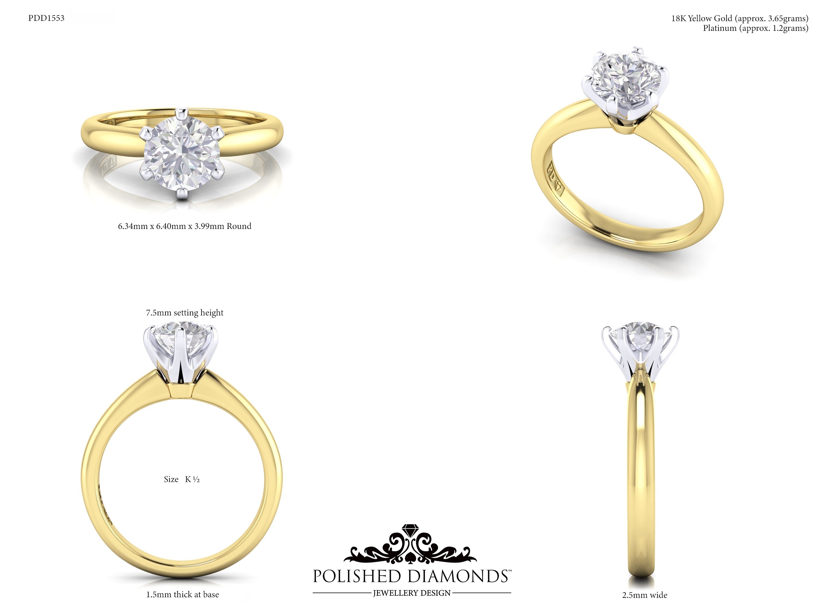 The Round Solitaire Diamond Ring (PDD1553) is a handcrafted engagement ring featuring a brilliant round-cut diamond in a classic solitaire setting, crafted in New Zealand. Available in platinum, white gold, yellow gold, or rose gold, this ring is made to order and fully customisable in diamond size, carat weight, and setting style. Visit our Auckland, Wellington, or Christchurch studios or enquire online for personalised pricing.