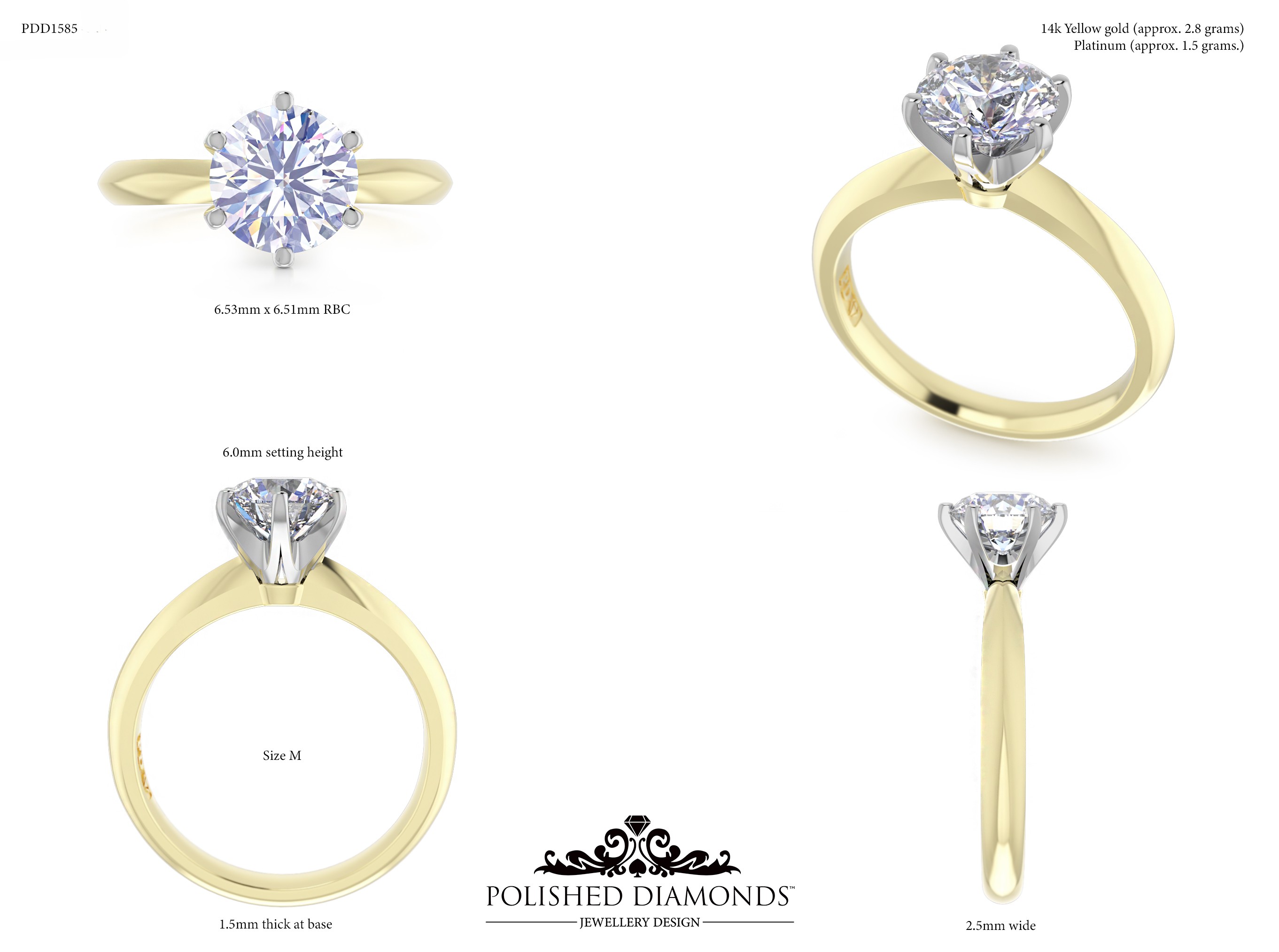 The Round Solitaire Diamond Ring (PDD1585) is a handcrafted engagement ring featuring a brilliant round-cut diamond in a classic solitaire setting, crafted in New Zealand. Available in platinum, white gold, yellow gold, or rose gold, this ring is made to order and fully customisable in diamond size, carat weight, and setting style. Visit our Auckland, Wellington, or Christchurch studios or enquire online for personalised pricing.