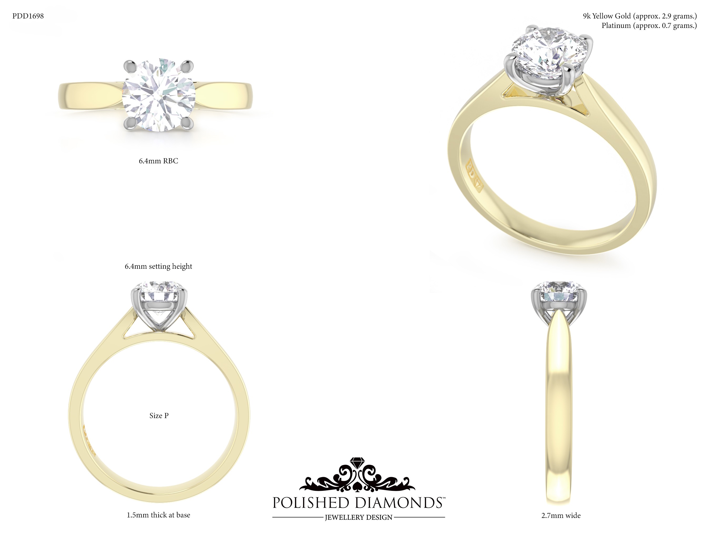 The Round Solitaire Diamond Ring (PDD1698) is a handcrafted engagement ring featuring a brilliant round-cut diamond in a classic solitaire setting, crafted in New Zealand. Available in platinum, white gold, yellow gold, or rose gold, this ring is made to order and fully customisable in diamond size, carat weight, and setting style. Visit our Auckland, Wellington, or Christchurch studios or enquire online for personalised pricing.