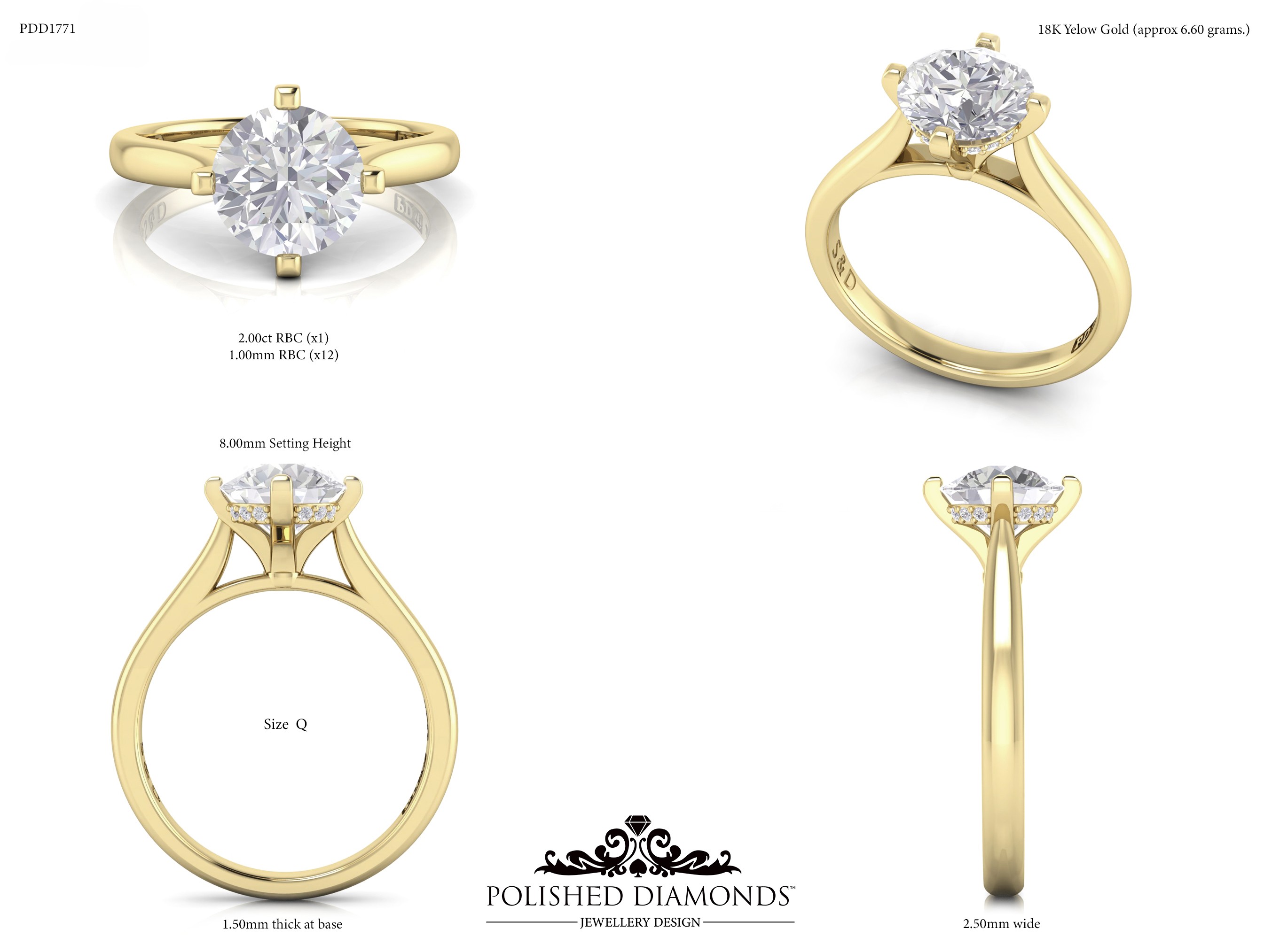 The Round Solitaire Diamond Ring (PDD1771) is a handcrafted engagement ring featuring a brilliant round-cut diamond in a classic solitaire setting, crafted in New Zealand. Available in platinum, white gold, yellow gold, or rose gold, this ring is made to order and fully customisable in diamond size, carat weight, and setting style. Visit our Auckland, Wellington, or Christchurch studios or enquire online for personalised pricing.