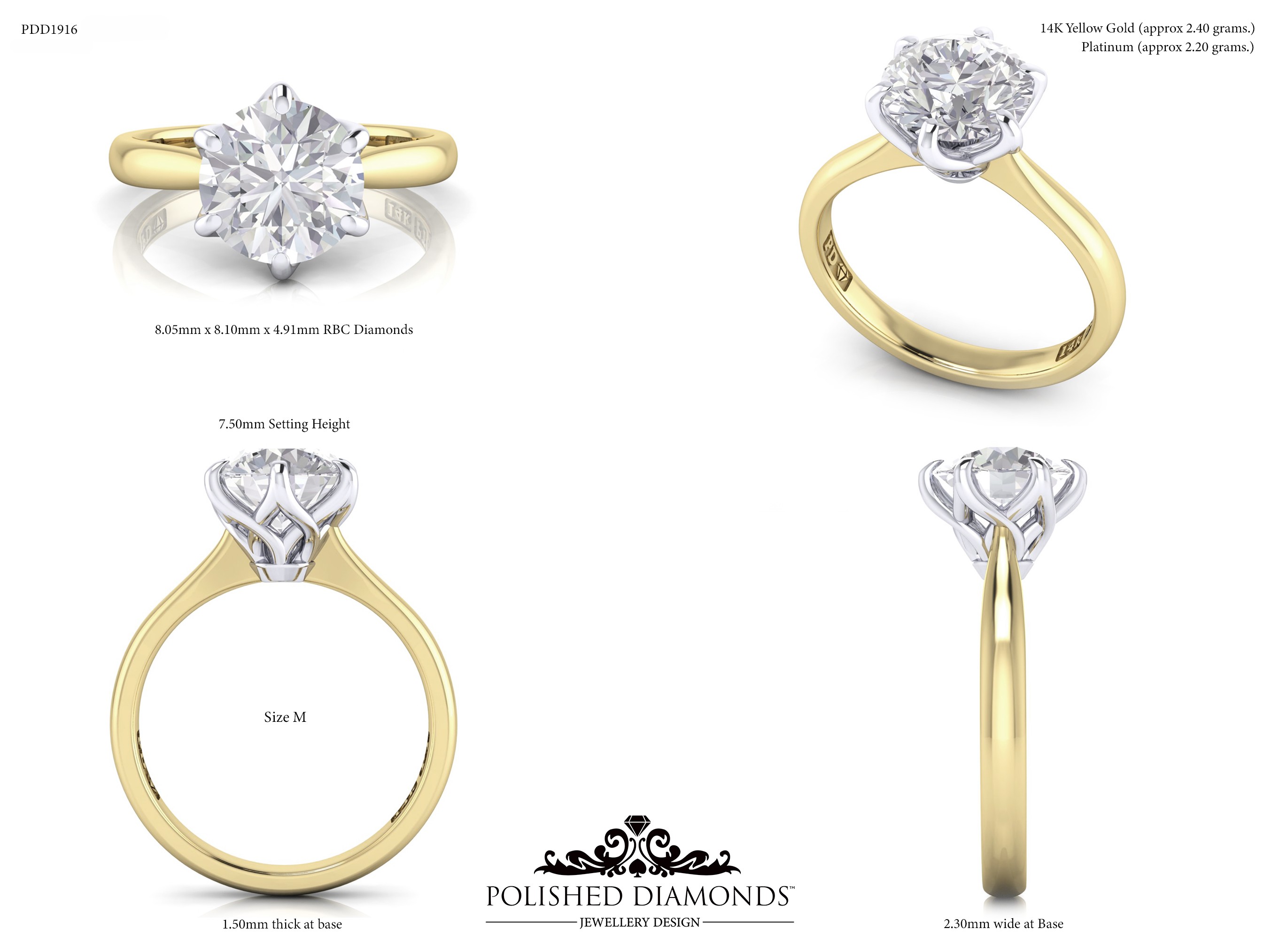 A handcrafted round solitaire ring. Product ID PDD1916. Elegant, timeless, and made with expert craftsmanship.