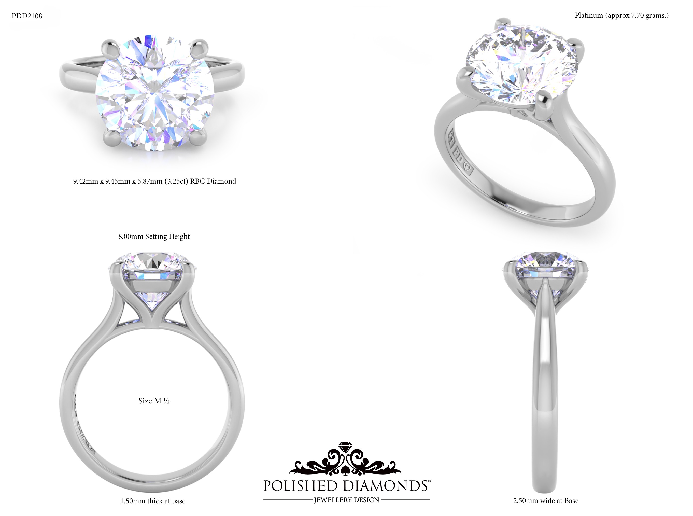 A handcrafted round solitaire ring. Product ID PDD2108. Elegant, timeless, and made with expert craftsmanship.