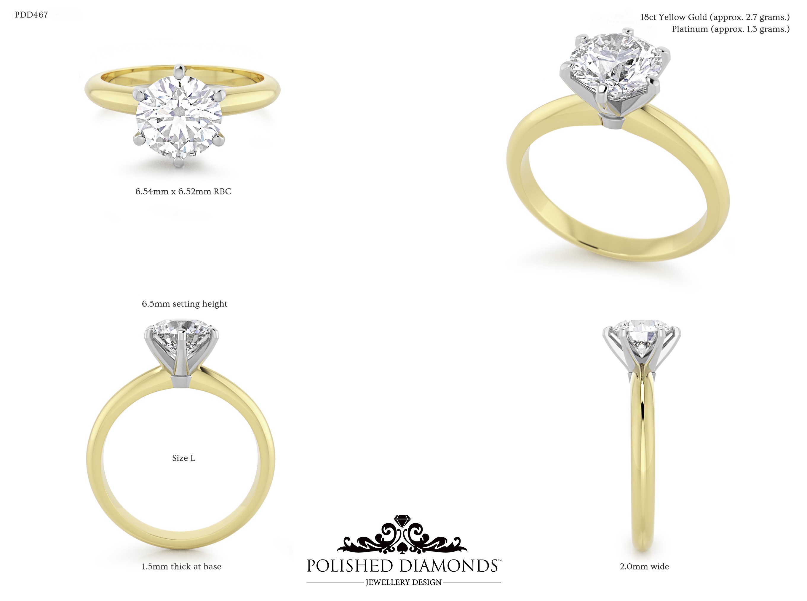 The Round Solitaire Diamond Ring (PDD467) is a handcrafted engagement ring featuring a brilliant round-cut diamond in a classic solitaire setting, crafted in New Zealand. Available in platinum, white gold, yellow gold, or rose gold, this ring is made to order and fully customisable in diamond size, carat weight, and setting style. Visit our Auckland, Wellington, or Christchurch studios or enquire online for personalised pricing.