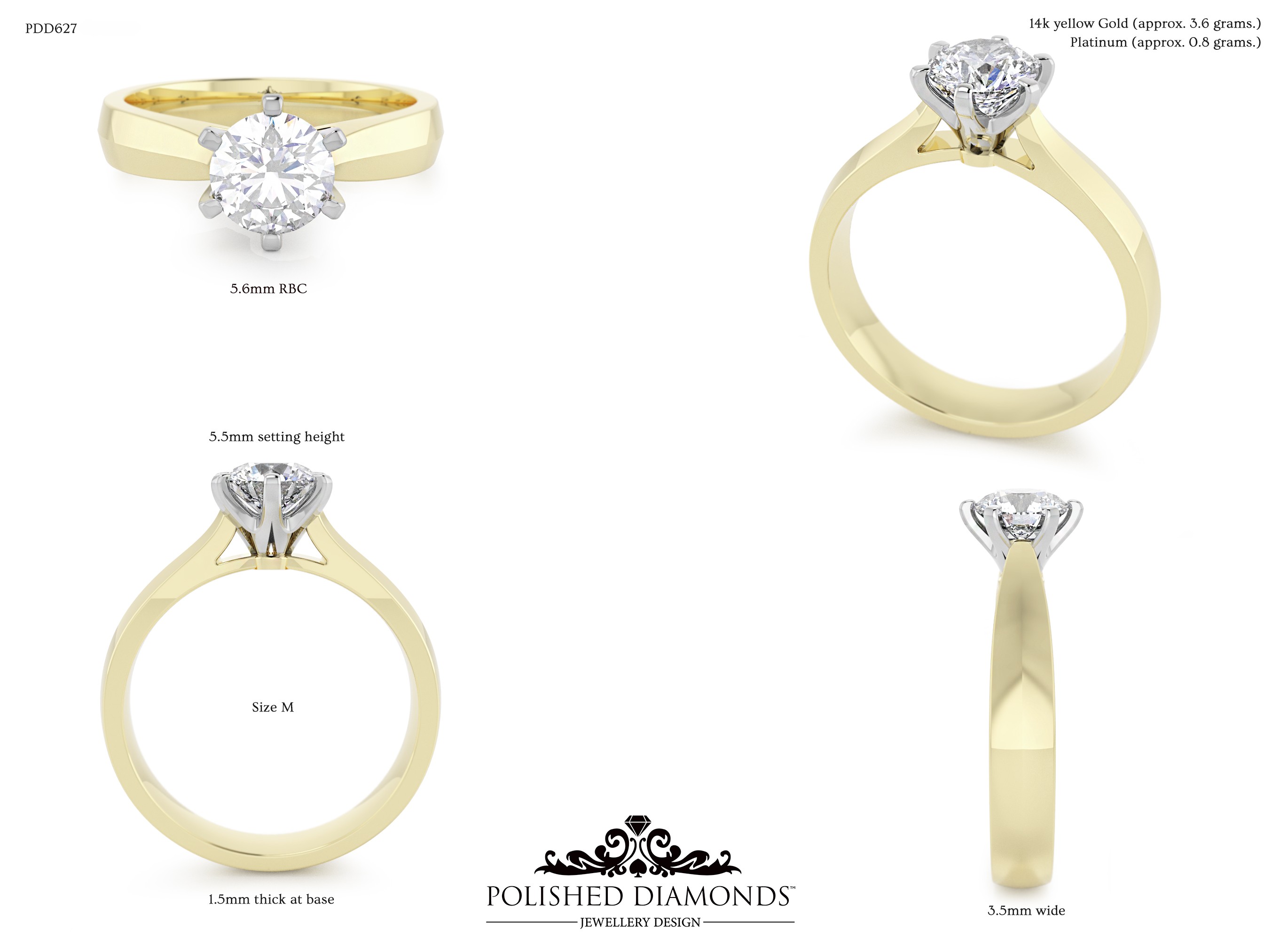 The Round Solitaire Diamond Ring (PDD627) is a handcrafted engagement ring featuring a brilliant round-cut diamond in a classic solitaire setting, crafted in New Zealand. Available in platinum, white gold, yellow gold, or rose gold, this ring is made to order and fully customisable in diamond size, carat weight, and setting style. Visit our Auckland, Wellington, or Christchurch studios or enquire online for personalised pricing.