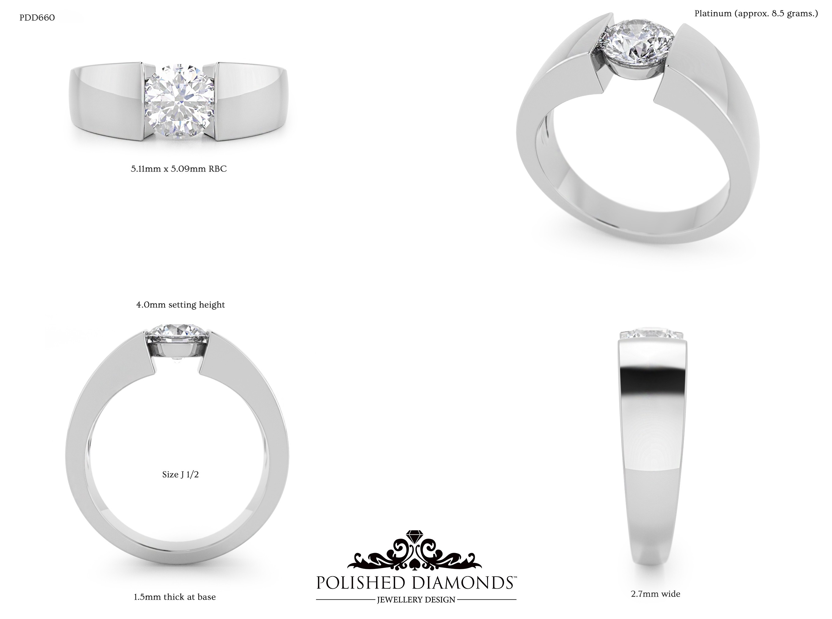 The Round Solitaire Diamond Ring (PDD660) is a handcrafted engagement ring featuring a brilliant round-cut diamond in a classic solitaire setting, crafted in New Zealand. Available in platinum, white gold, yellow gold, or rose gold, this ring is made to order and fully customisable in diamond size, carat weight, and setting style. Visit our Auckland, Wellington, or Christchurch studios or enquire online for personalised pricing.