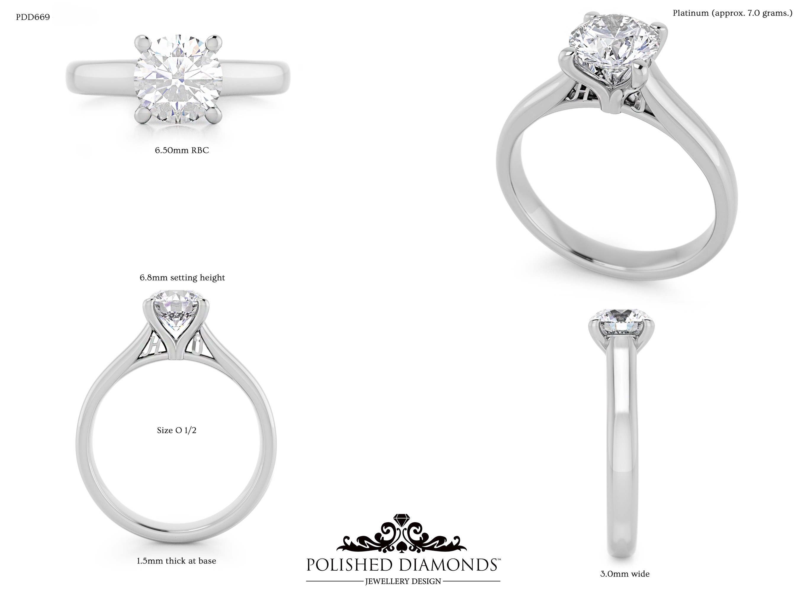 The Round Solitaire Diamond Ring (PDD669) is a handcrafted engagement ring featuring a brilliant round-cut diamond in a classic solitaire setting, crafted in New Zealand. Available in platinum, white gold, yellow gold, or rose gold, this ring is made to order and fully customisable in diamond size, carat weight, and setting style. Visit our Auckland, Wellington, or Christchurch studios or enquire online for personalised pricing.