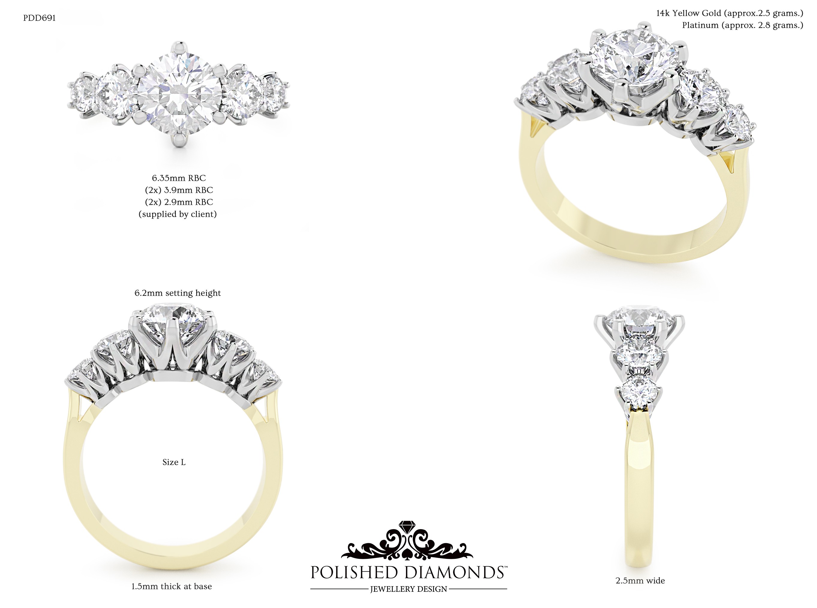 The Round Solitaire Diamond Ring (PDD691) is a handcrafted engagement ring featuring a brilliant round-cut diamond in a classic solitaire setting, crafted in New Zealand. Available in platinum, white gold, yellow gold, or rose gold, this ring is made to order and fully customisable in diamond size, carat weight, and setting style. Visit our Auckland, Wellington, or Christchurch studios or enquire online for personalised pricing.