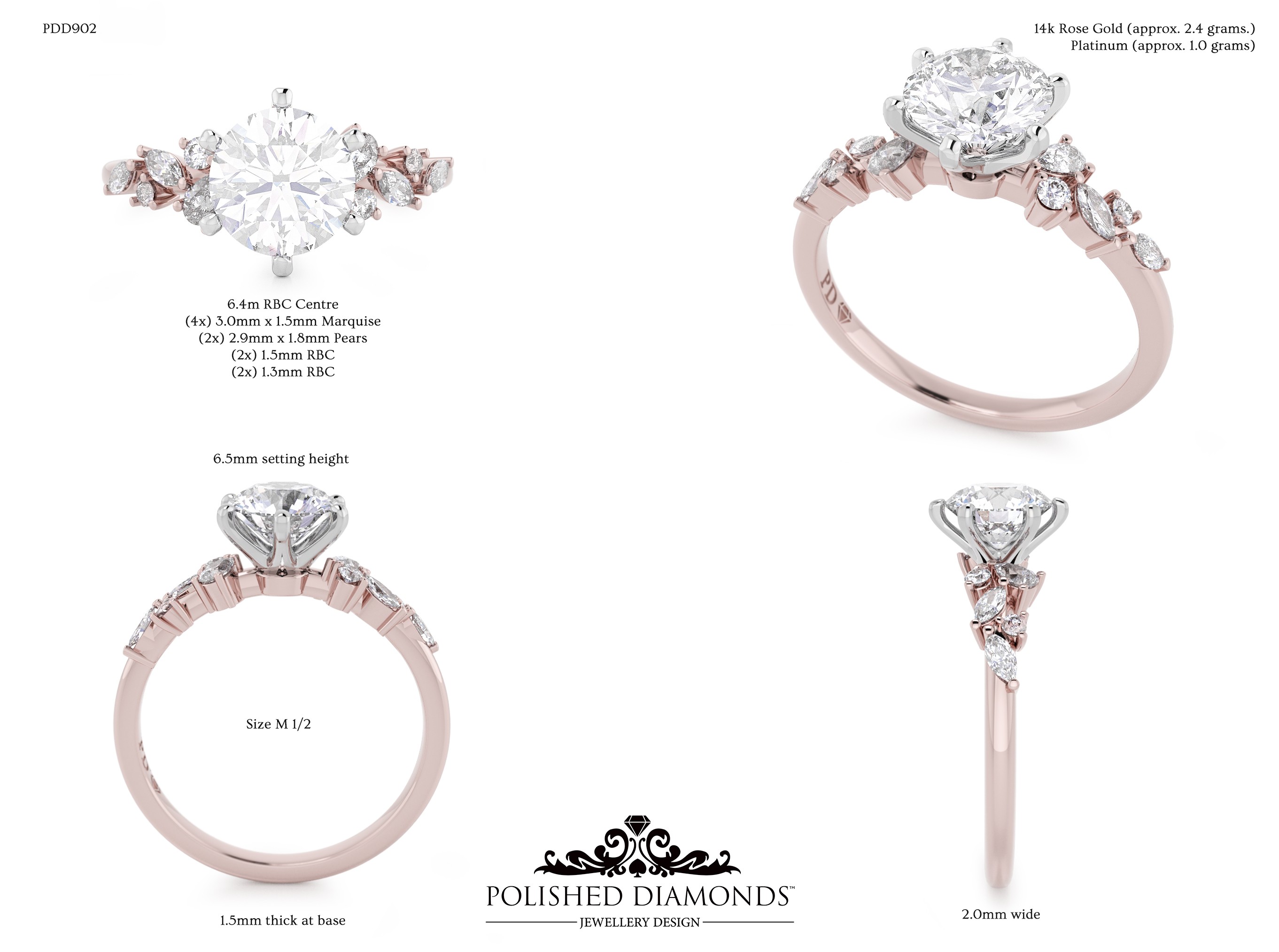 The Round Solitaire Diamond Ring (PDD902) is a handcrafted engagement ring featuring a brilliant round-cut diamond in a classic solitaire setting, crafted in New Zealand. Available in platinum, white gold, yellow gold, or rose gold, this ring is made to order and fully customisable in diamond size, carat weight, and setting style. Visit our Auckland, Wellington, or Christchurch studios or enquire online for personalised pricing.