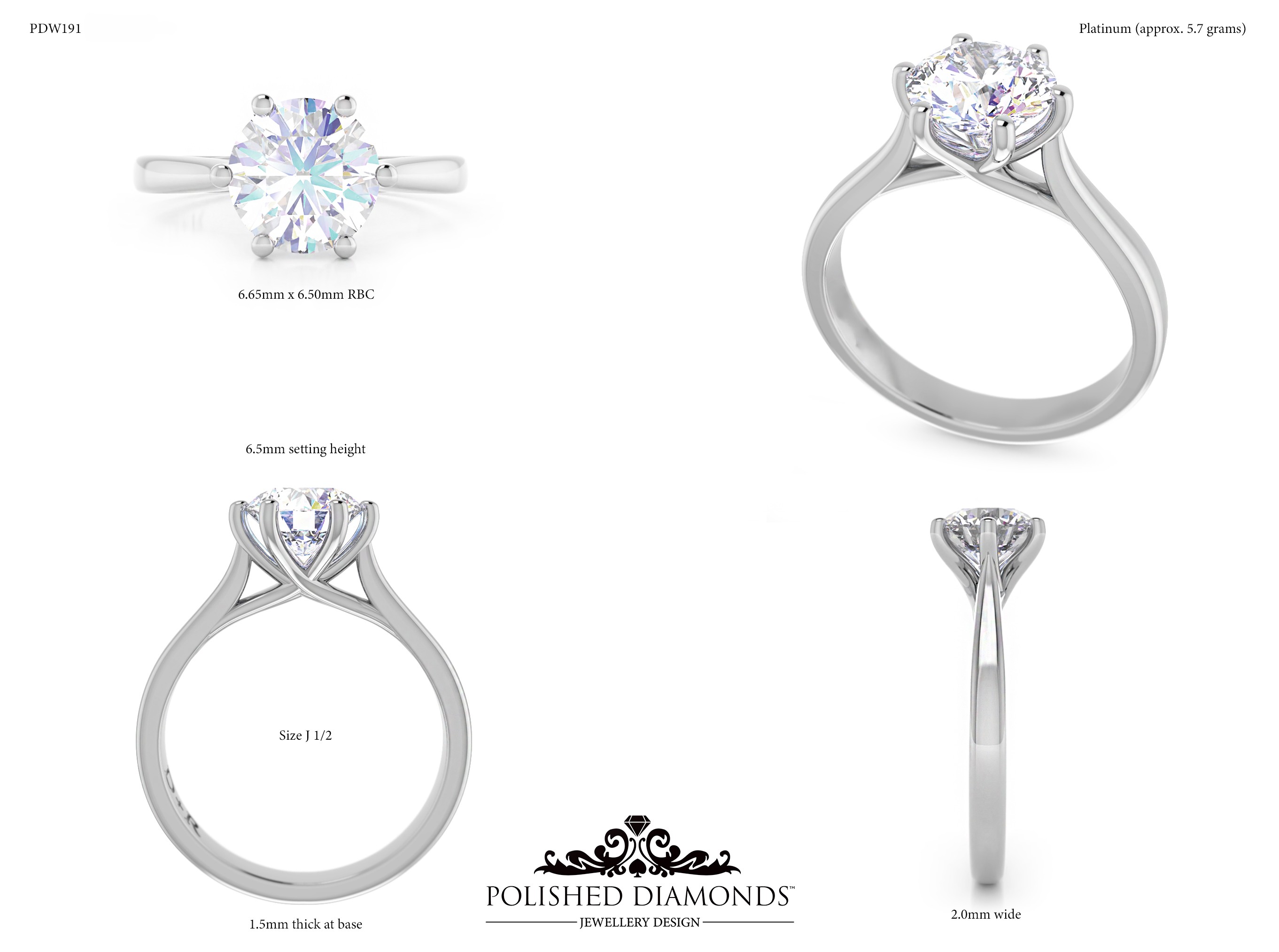 A handcrafted round solitaire ring. Product ID PDW191. Elegant, timeless, and made with expert craftsmanship.