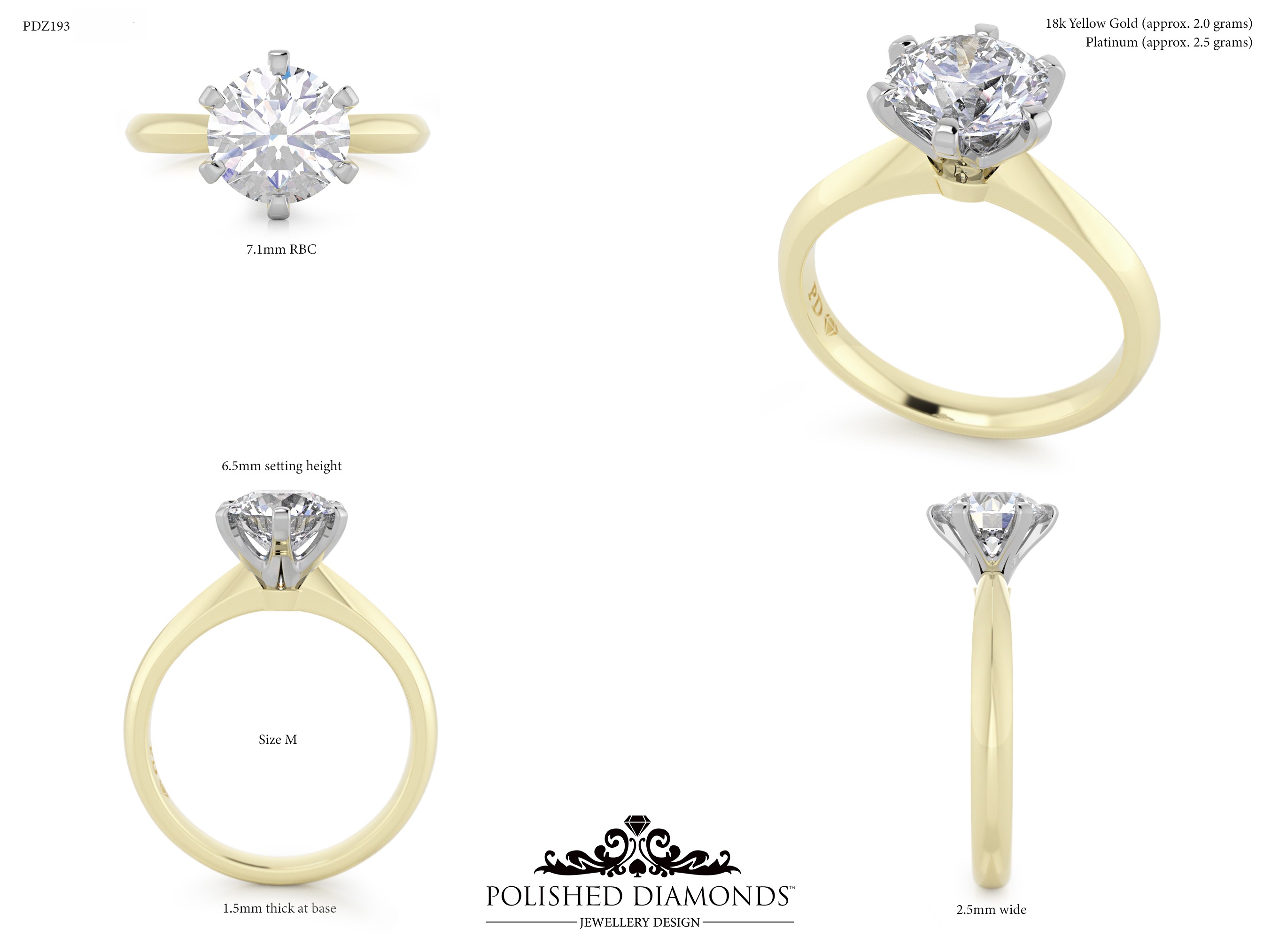 A handcrafted round solitaire ring. Product ID PDZ193. Elegant, timeless, and made with expert craftsmanship.