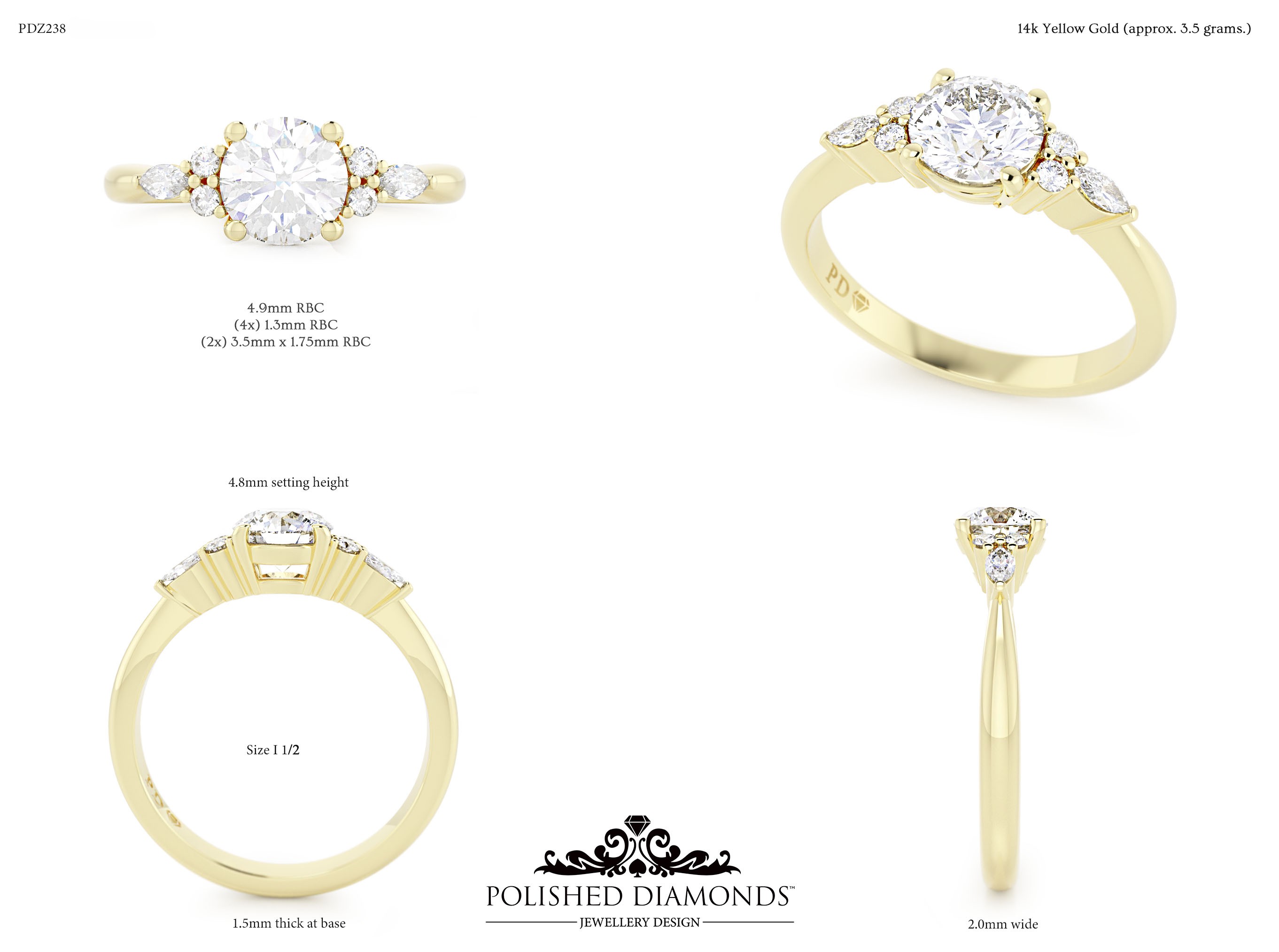 A handcrafted round solitaire ring. Product ID PDZ238. Elegant, timeless, and made with expert craftsmanship.
