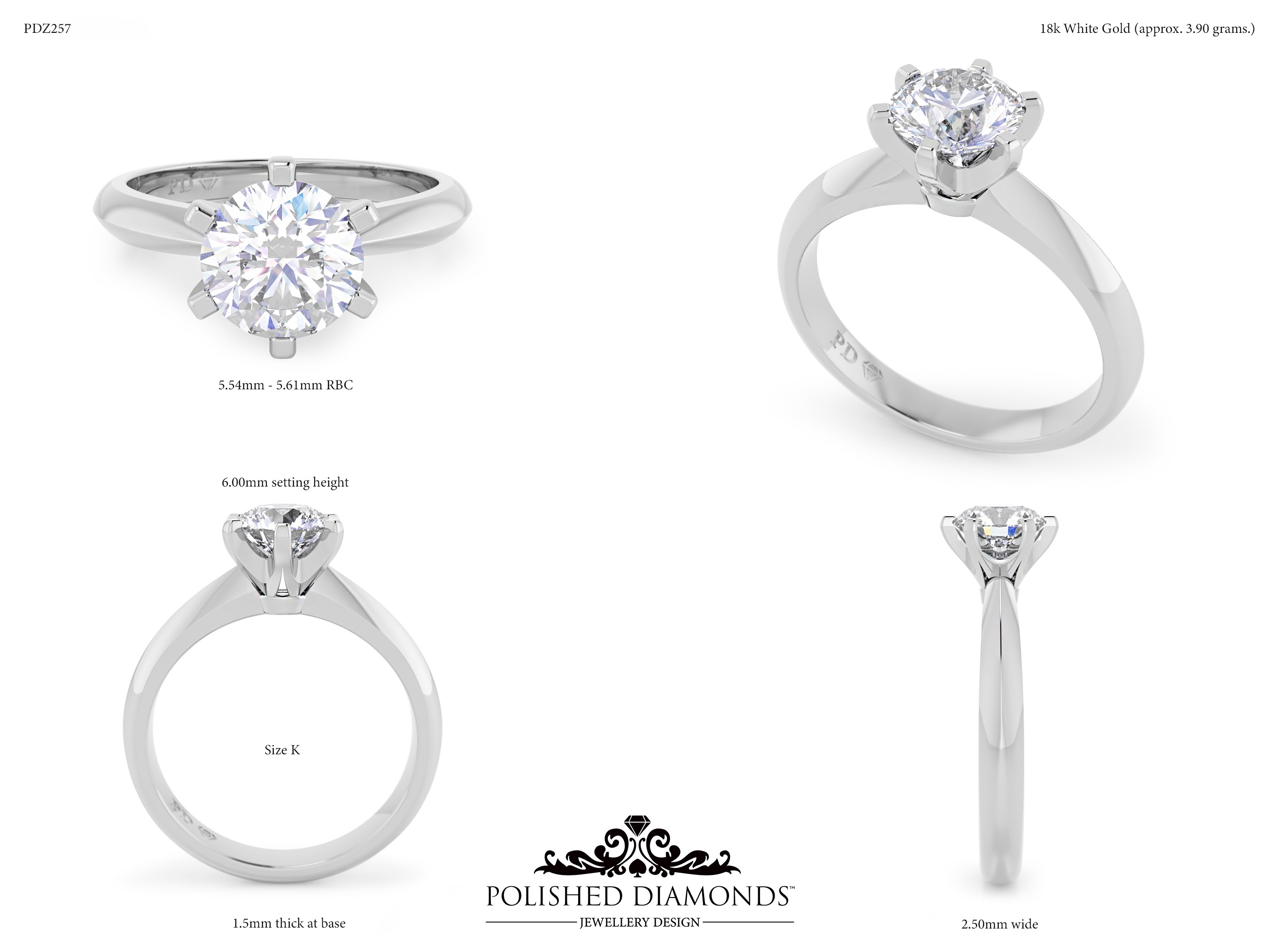 A handcrafted round solitaire ring. Product ID PDZ257. Elegant, timeless, and made with expert craftsmanship.