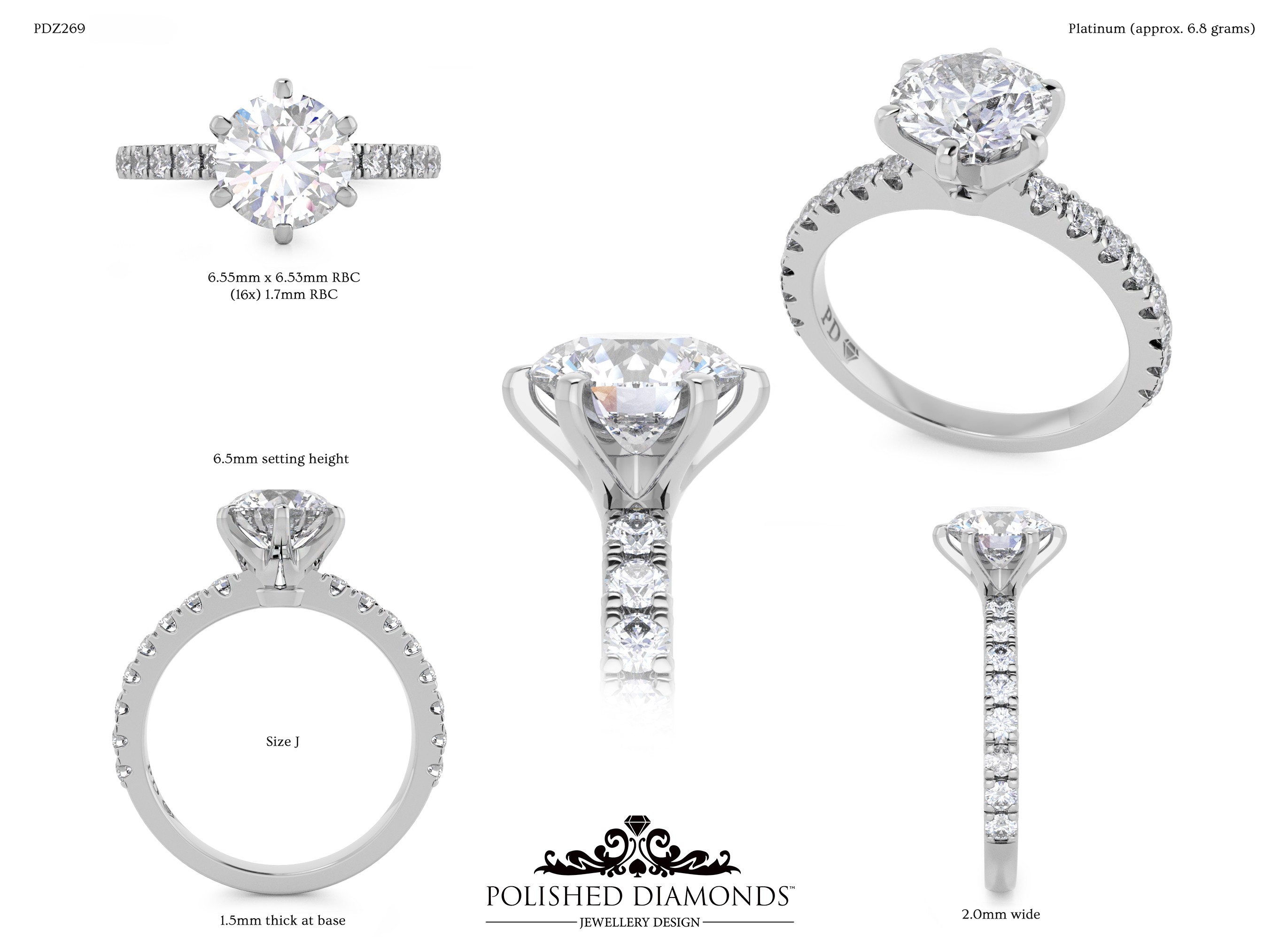The Round Solitaire Diamond Ring (PDZ269) is a handcrafted engagement ring featuring a brilliant round-cut diamond in a classic solitaire setting, crafted in New Zealand. Available in platinum, white gold, yellow gold, or rose gold, this ring is made to order and fully customisable in diamond size, carat weight, and setting style. Visit our Auckland, Wellington, or Christchurch studios or enquire online for personalised pricing.