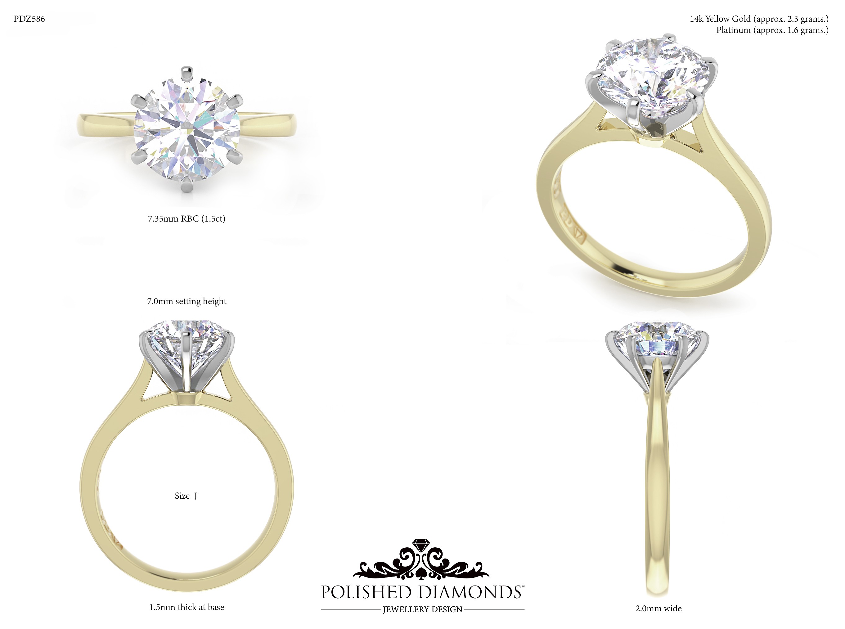 The Round Solitaire Diamond Ring (PDZ586) is a handcrafted engagement ring featuring a brilliant round-cut diamond in a classic solitaire setting, crafted in New Zealand. Available in platinum, white gold, yellow gold, or rose gold, this ring is made to order and fully customisable in diamond size, carat weight, and setting style. Visit our Auckland, Wellington, or Christchurch studios or enquire online for personalised pricing.