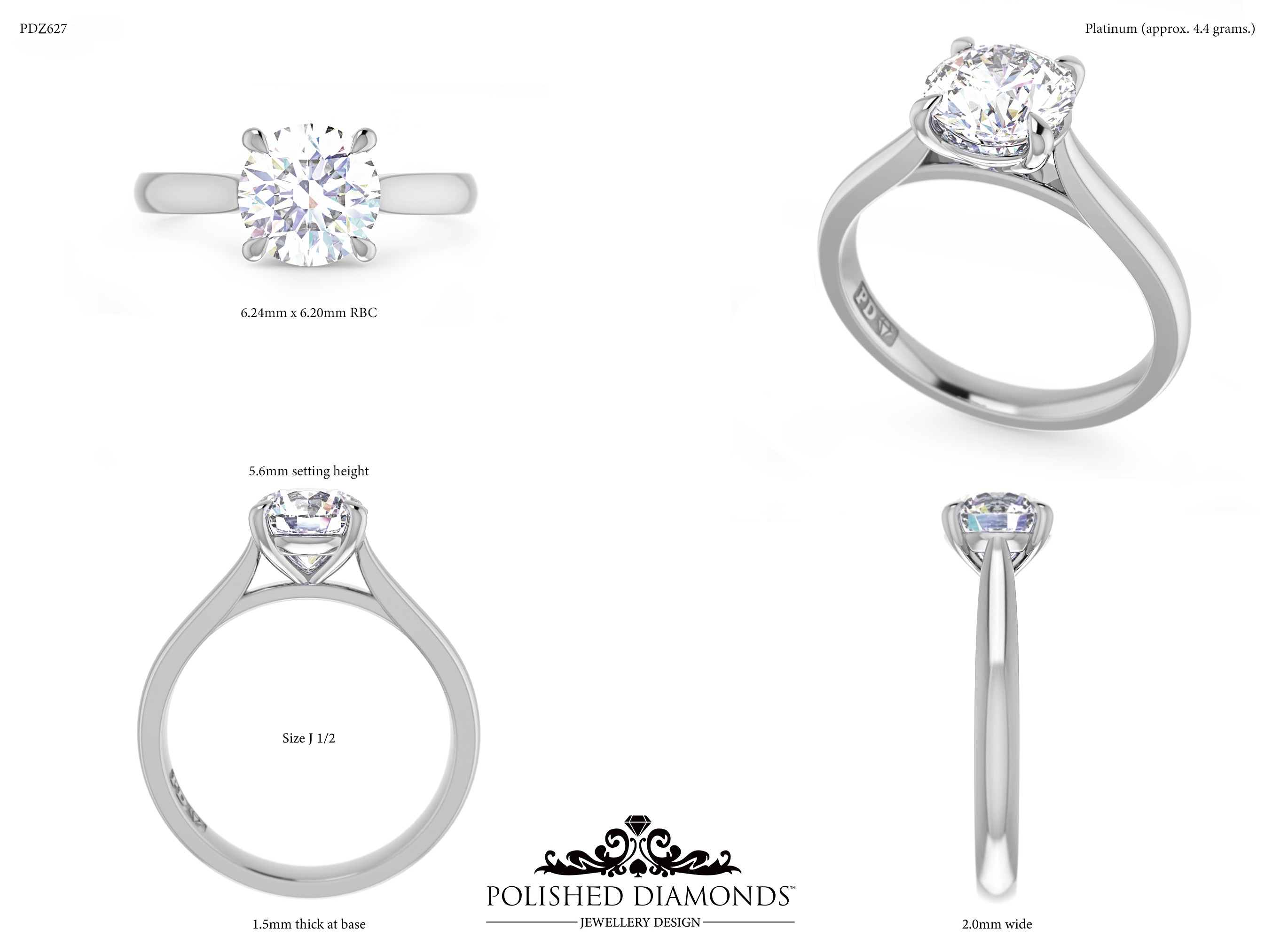 The Round Solitaire Diamond Ring (PDZ627) is a handcrafted engagement ring featuring a brilliant round-cut diamond in a classic solitaire setting, crafted in New Zealand. Available in platinum, white gold, yellow gold, or rose gold, this ring is made to order and fully customisable in diamond size, carat weight, and setting style. Visit our Auckland, Wellington, or Christchurch studios or enquire online for personalised pricing.