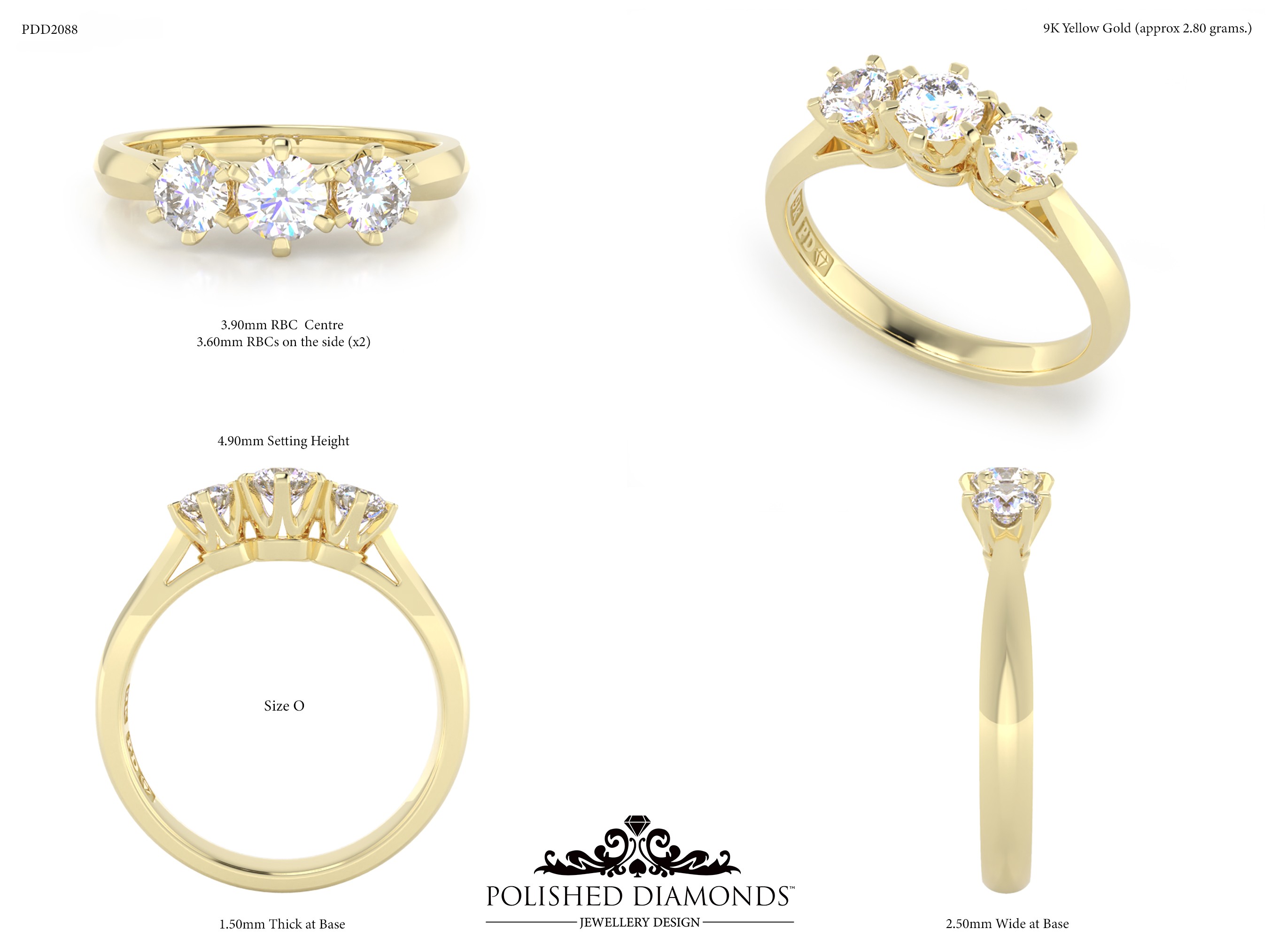 A handcrafted round trilogy ring. Product ID PDD2088. Elegant, timeless, and made with expert craftsmanship.
