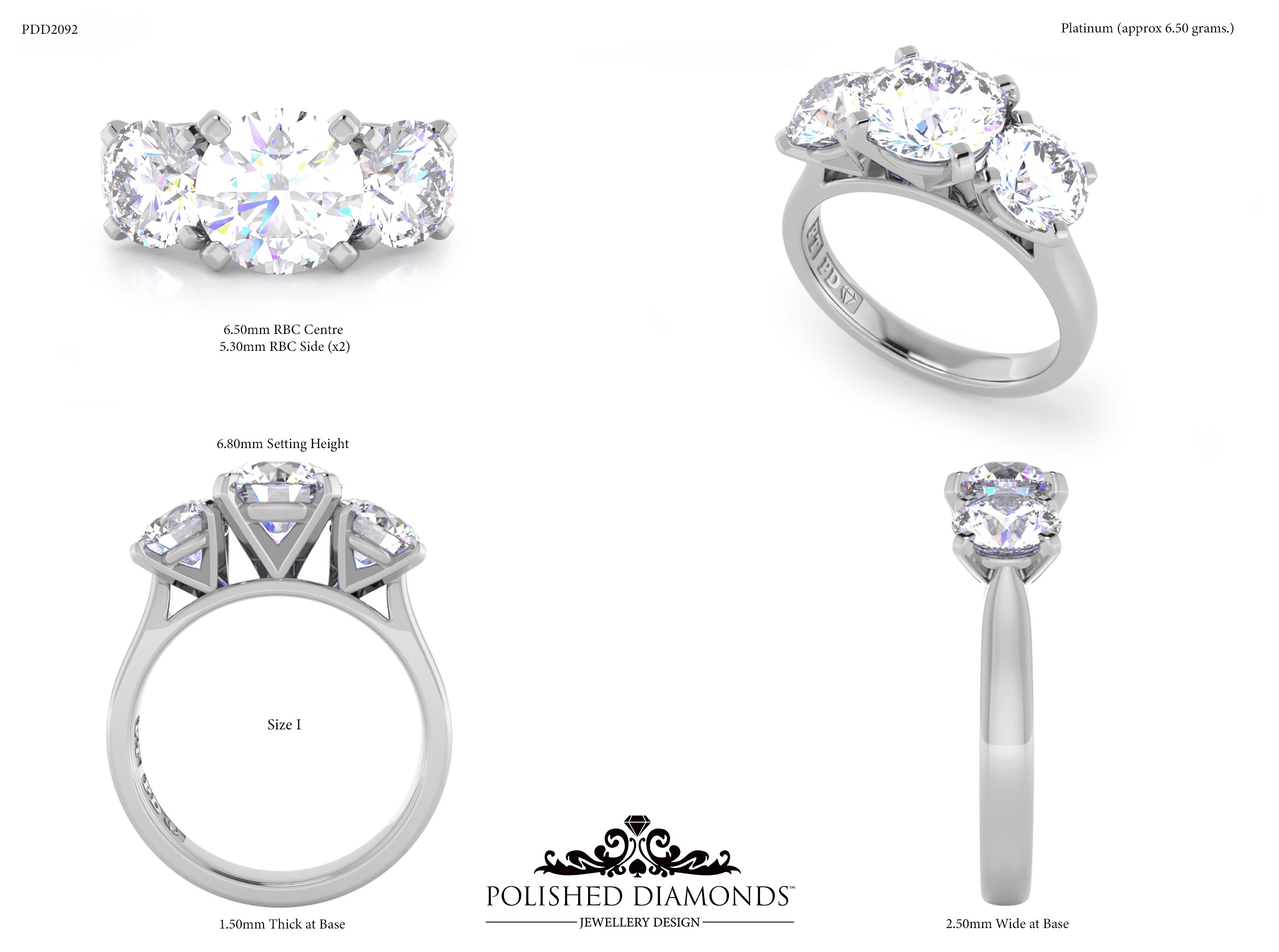A handcrafted round trilogy ring. Product ID PDD2092. Elegant, timeless, and made with expert craftsmanship.