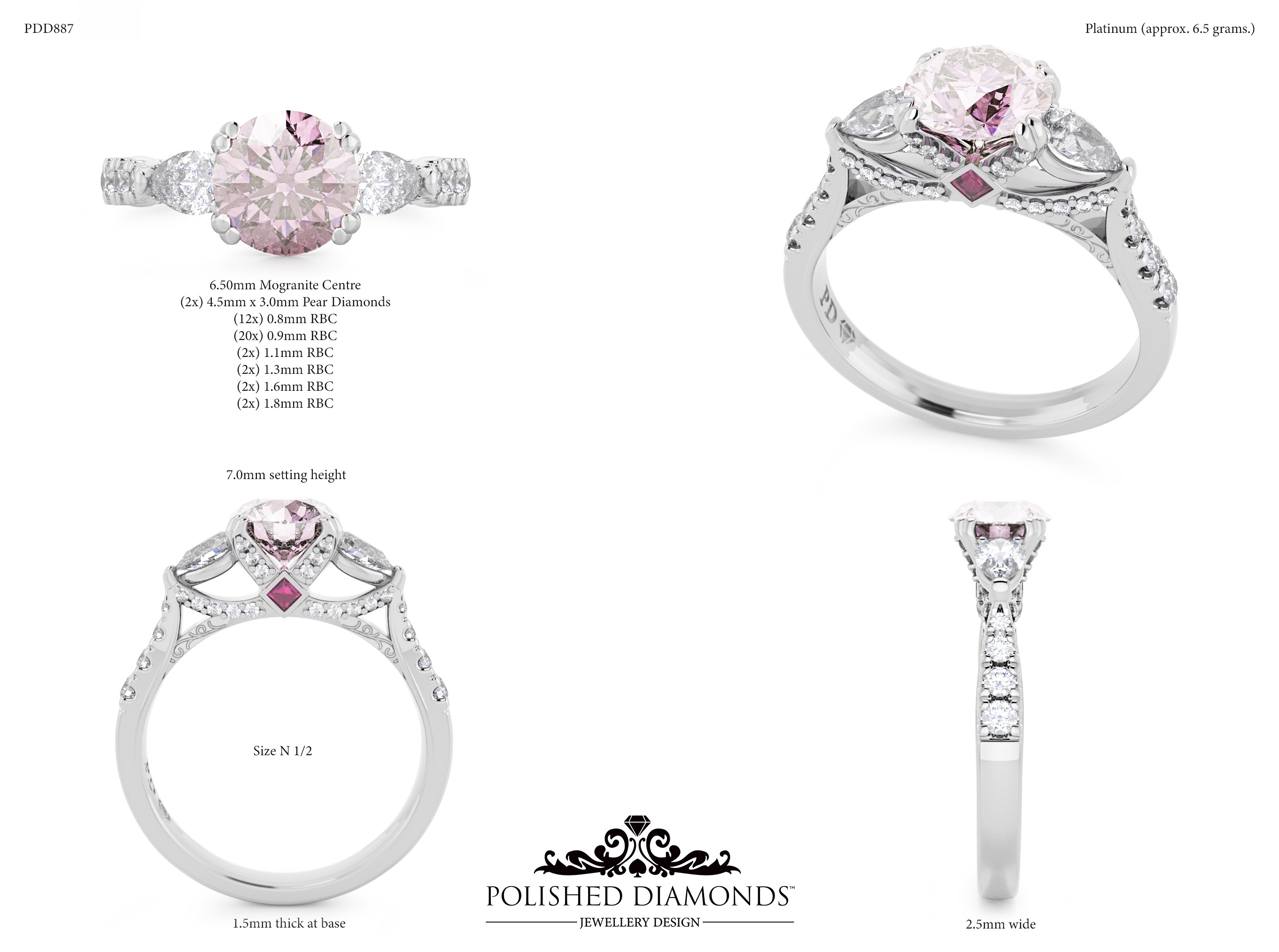 The Round Trilogy Diamond Ring (PDD887) features three brilliant round-cut diamonds representing your past, present, and future — a deeply meaningful choice for engagements and anniversaries. Crafted in New Zealand and made to order in your choice of platinum, white gold, yellow gold, or rose gold. Visit our Auckland, Wellington, or Christchurch studios or enquire online for pricing.