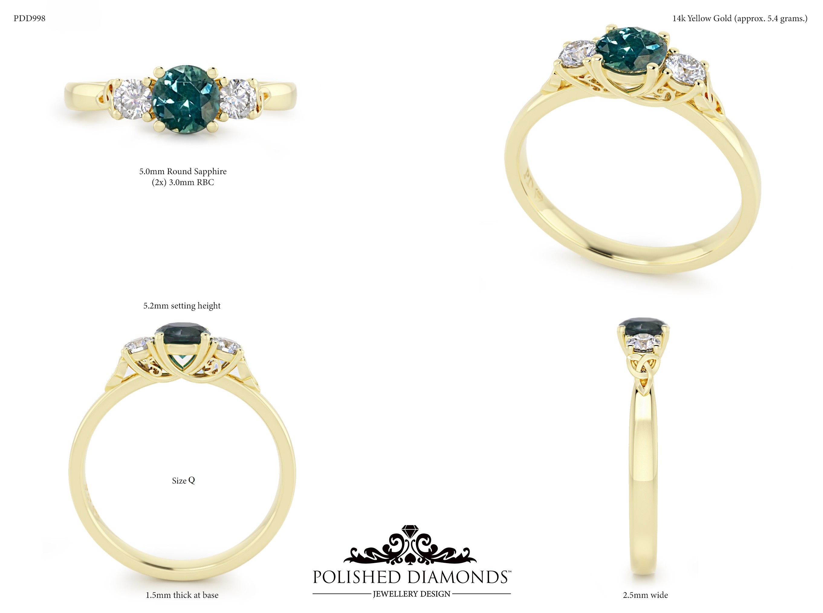 The Round Trilogy Diamond Ring (PDD998) features three brilliant round-cut diamonds representing your past, present, and future — a deeply meaningful choice for engagements and anniversaries. Crafted in New Zealand and made to order in your choice of platinum, white gold, yellow gold, or rose gold. Visit our Auckland, Wellington, or Christchurch studios or enquire online for pricing.